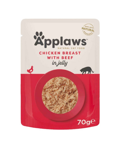 APPLAWS Cat Adult Pouch Chicken Breast with Beef in Jelly Plicuri hrana pisici, pui si vita in aspic 16x70 g