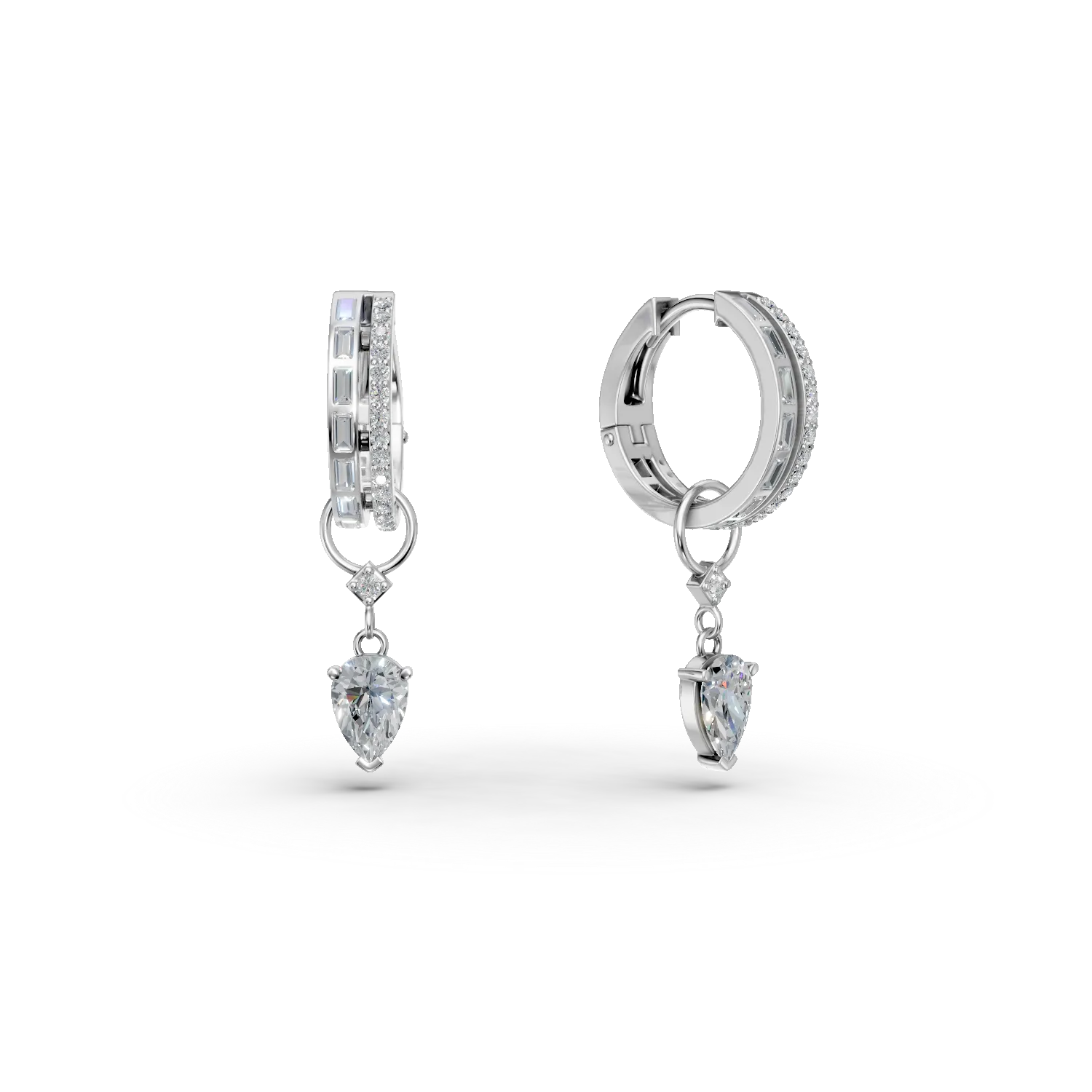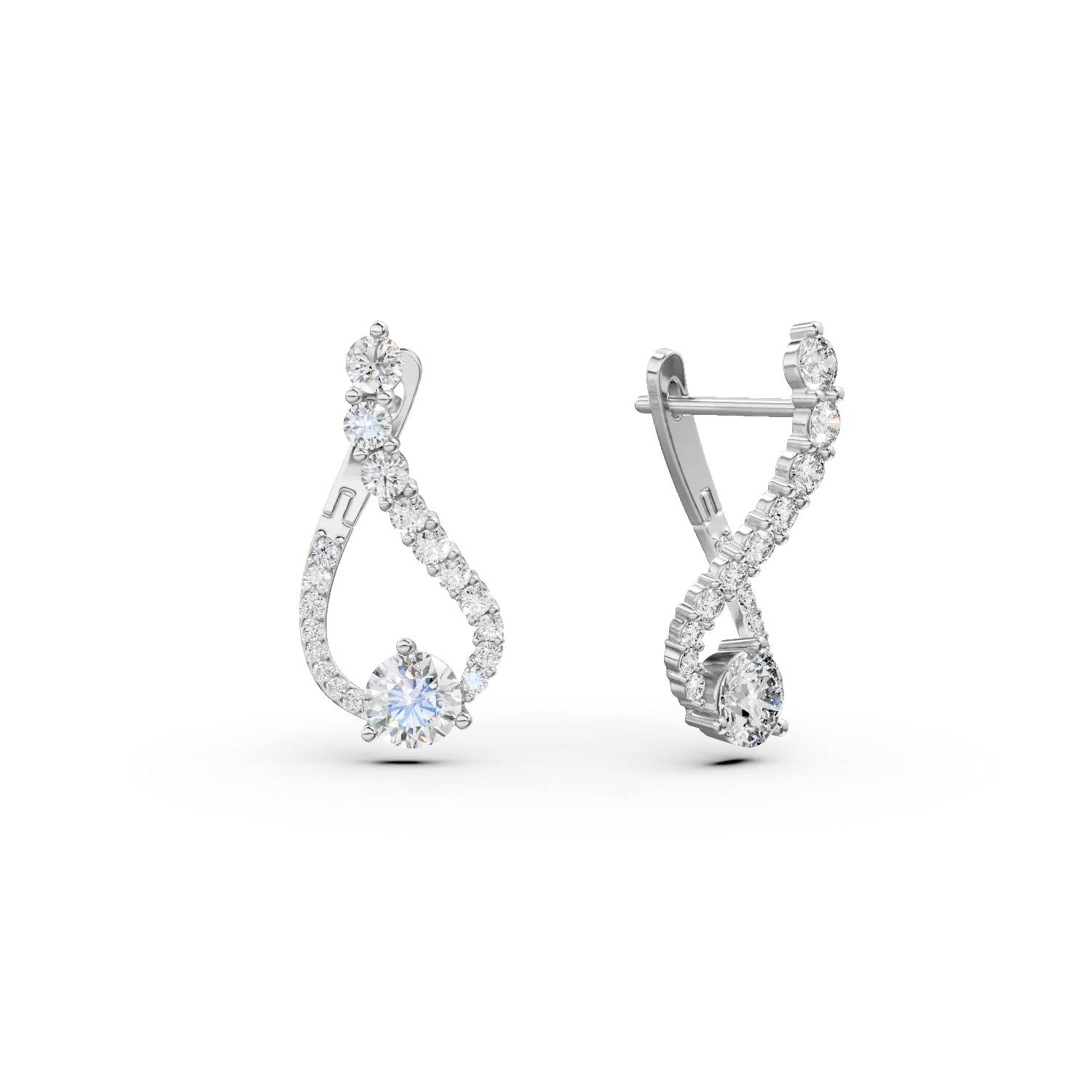 Cercei geometrici din argint roz cu zirconii si perle de cultura