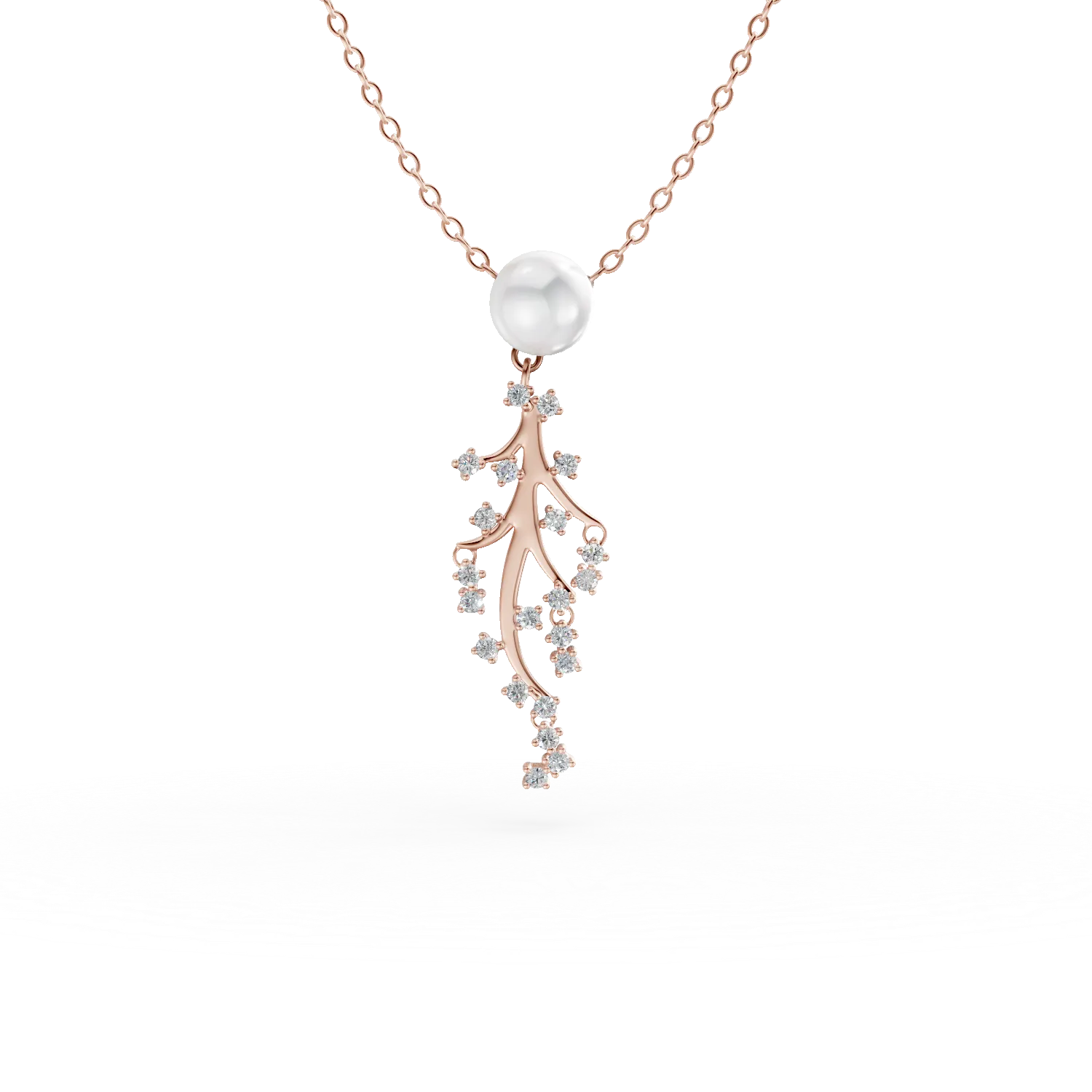 Lant cu pandantiv geometric din argint roz cu zirconii si perla de cultura