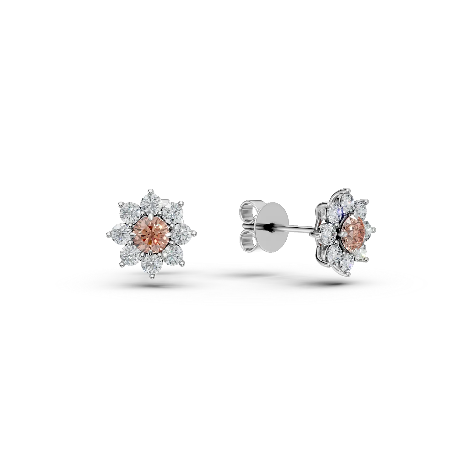 Cercei floare din aur alb cu diamante fancy roz si diamante incolore de 2.5ct create in laborator