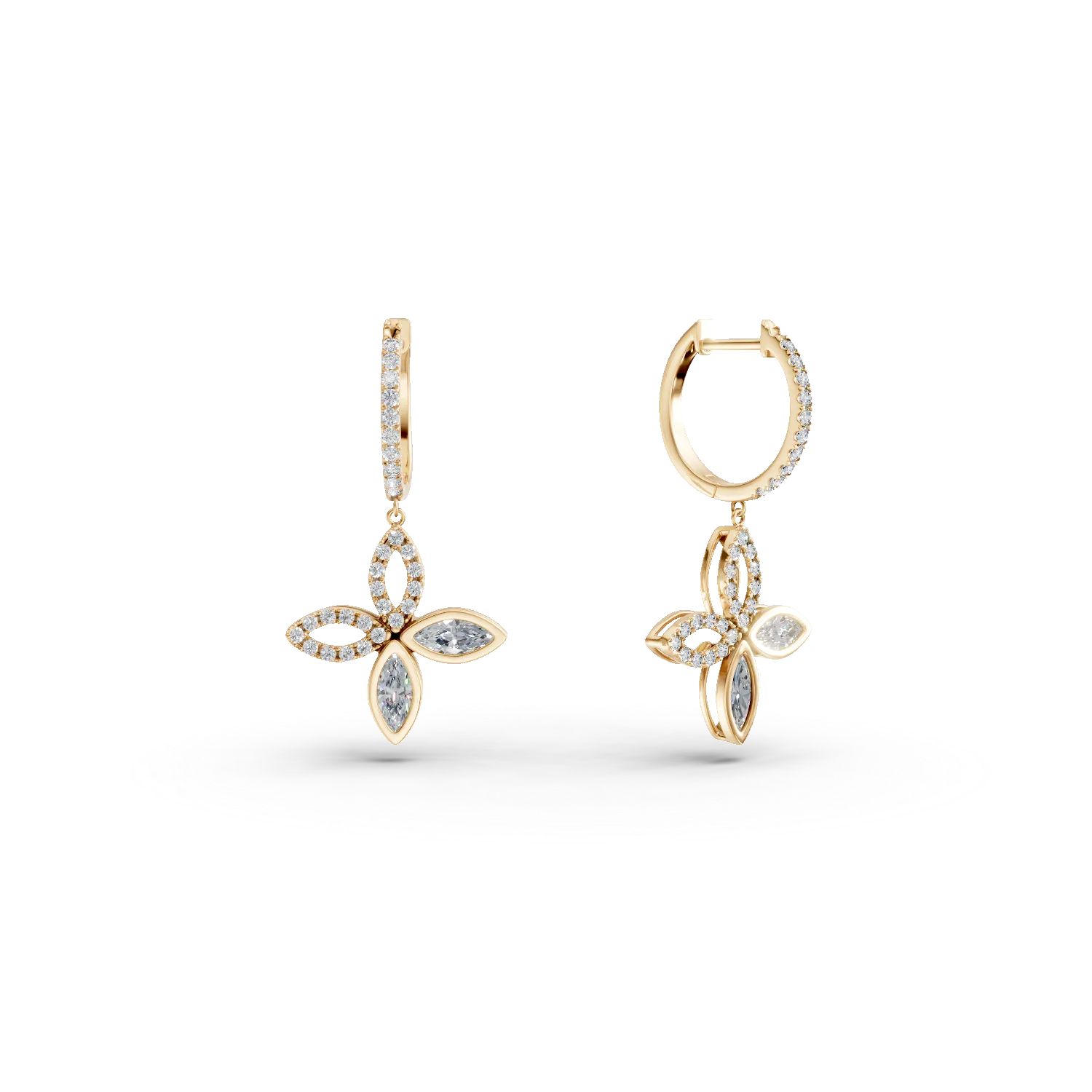 Cercei florali din aur galben cu diamante de 1.3ct create in laborator