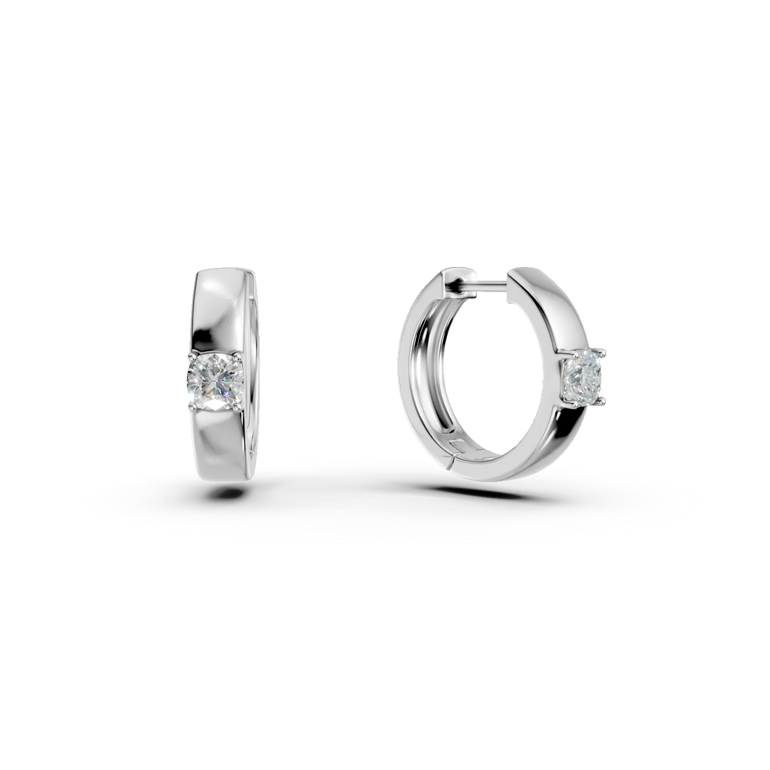 Cercei creole din aur alb cu diamante de 0.6ct create in laborator