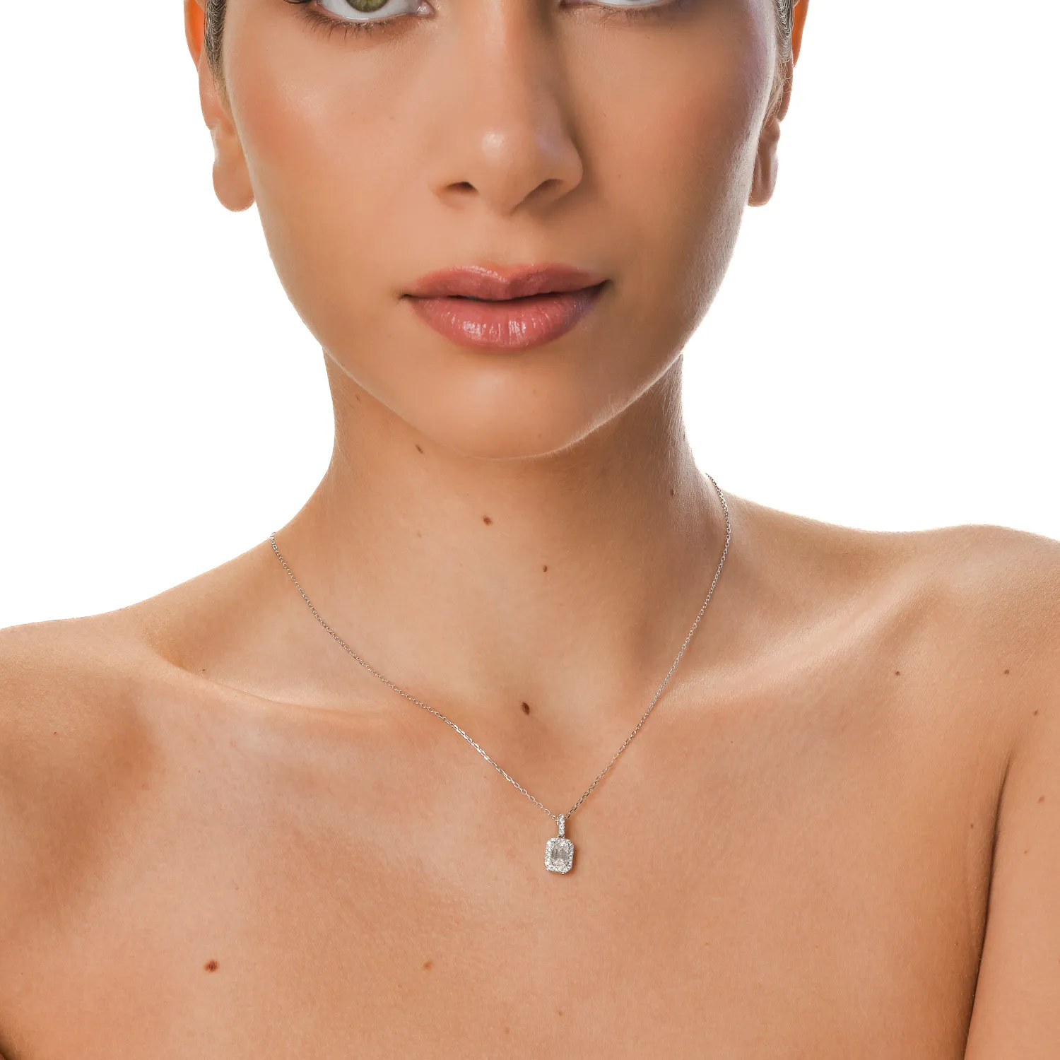 Lant cu pandantiv din aur alb cu diamante de 1.1ct create in laborator