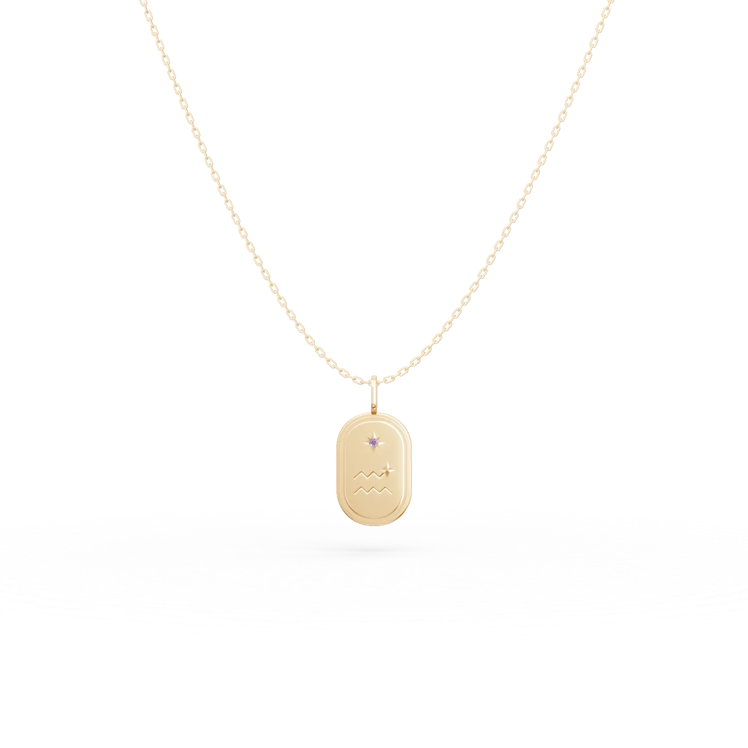 Lant cu pandantiv semn zodiacal Varsator din argint galben cu zirconia mov deschis