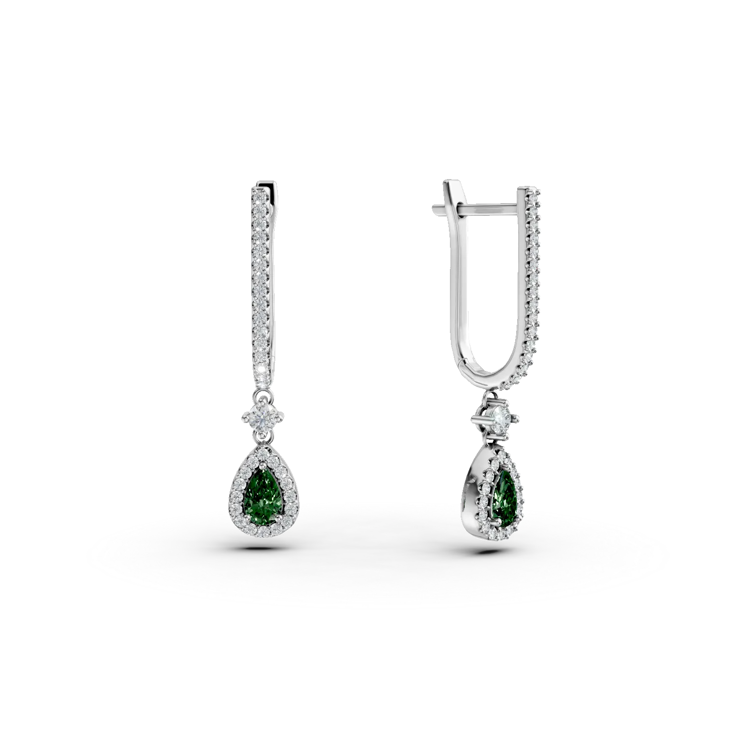 Cercei lacrima din argint cu zirconii verzi si transparente