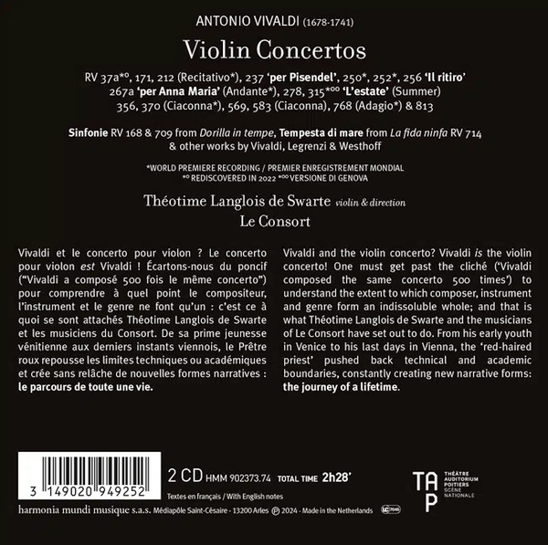 Antonio Vivaldi: Concerti Per Una Vita | Theotime Langlois De Swarte, Le Consort