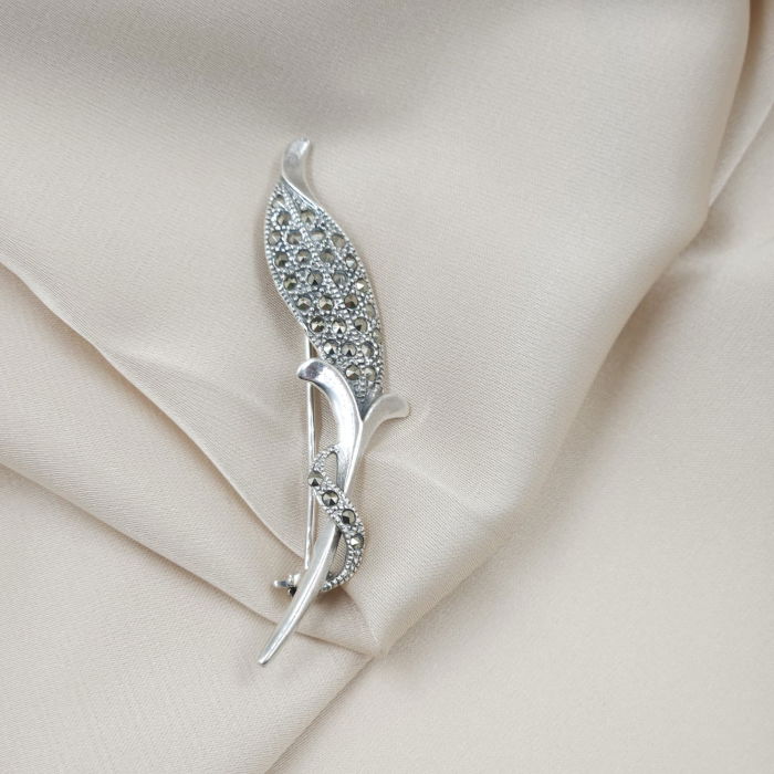 Brosa floare din argint 925 cu pietre foarte fine de marcasite