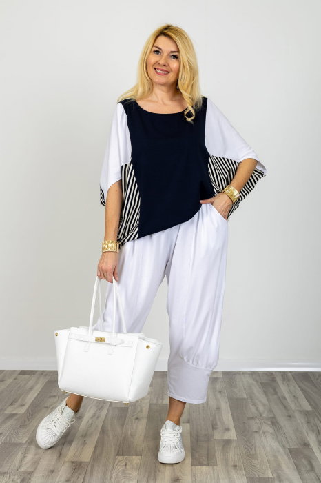Bluza alb-negru oversize cu design asimetric din bumbac