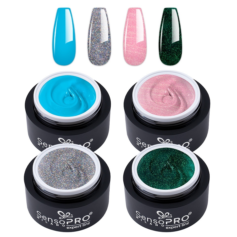 Set 4 Geluri UV Colorate Twinkle Glam, SensoPRO Milano