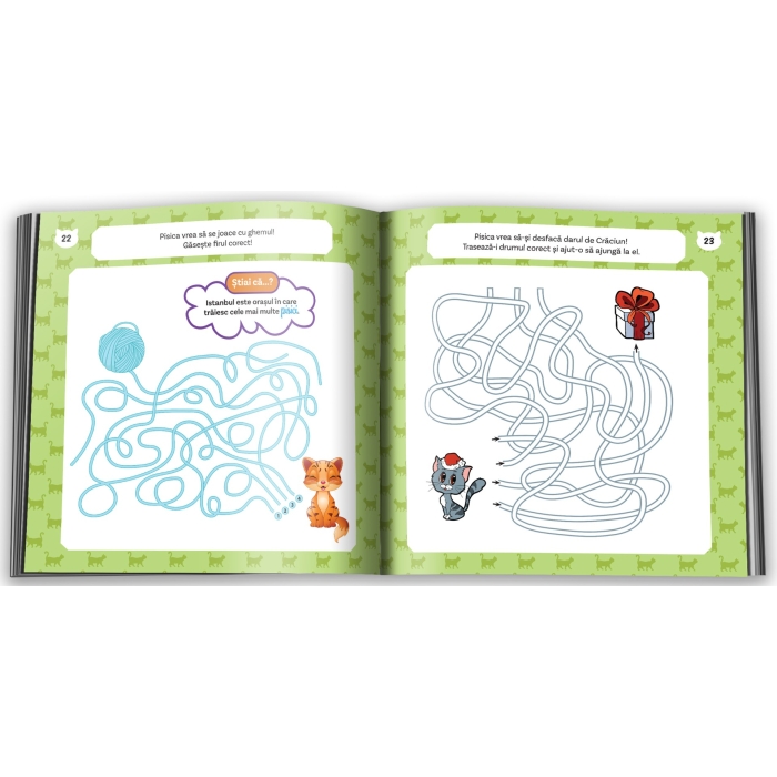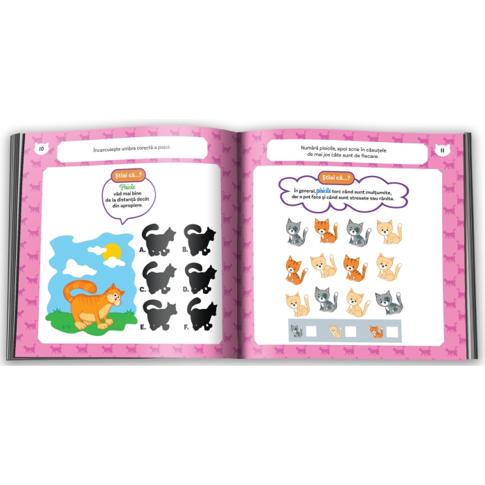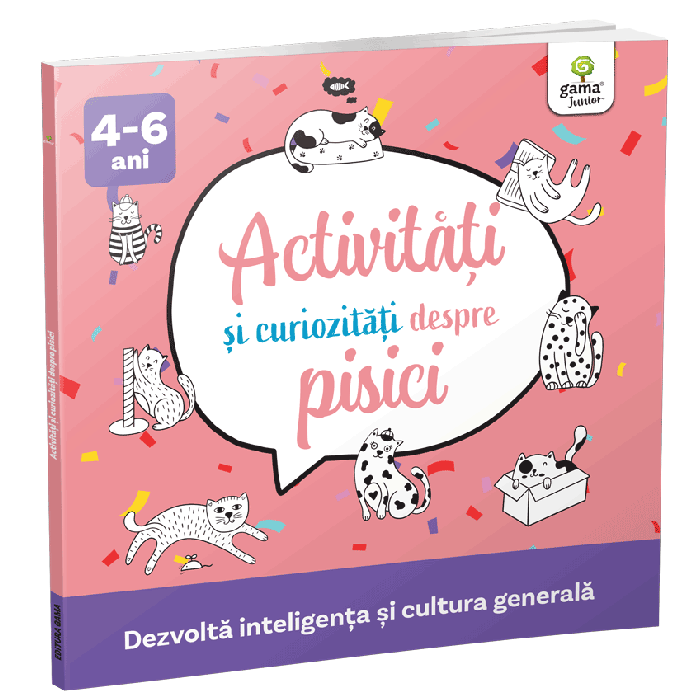 Stiai ca pisicile urasc mirosul de citrice si ca, de cele mai multe ori, miauna doar ca sa comunice cu oamenii? „Activitati si curiozitati despre pisici” contine informatii interesante si activitati precum:• puncte de unit• asocieri logice• labirinturi• operatii matematice simple• careuri de completat• pagini de desenat si de colorat