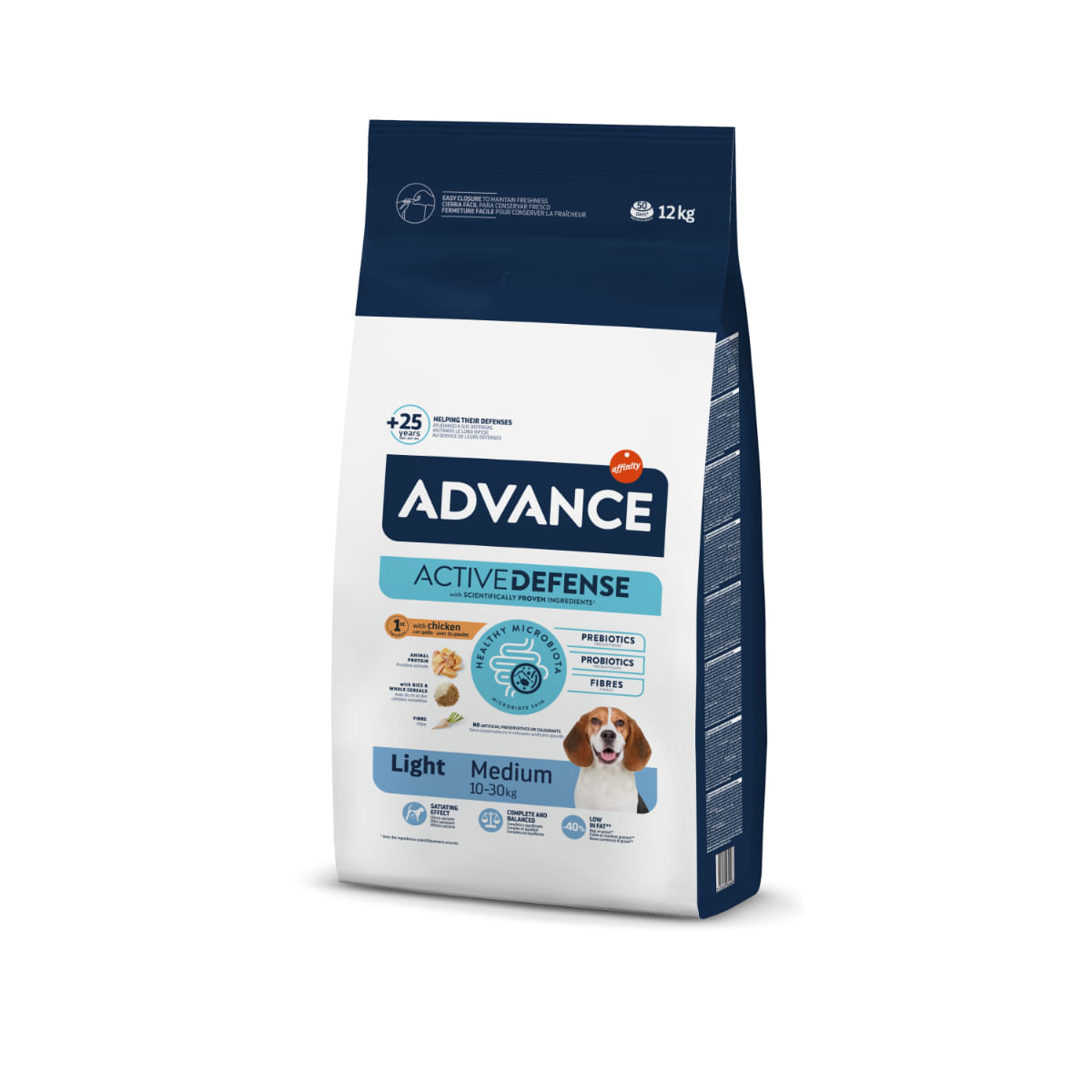 ADVANCE Light Medium, M, Pui, hrană uscată câini, obezitate, 12kg