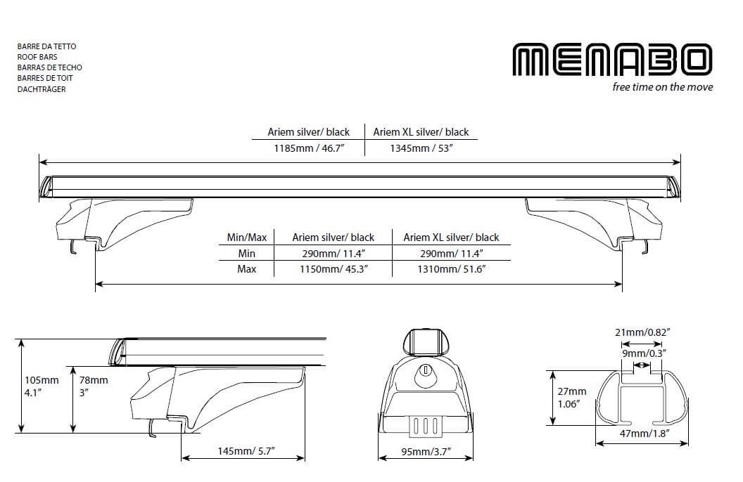 Bare transversale portbagaj Menabo Ariem Black compatibile cu Audi A6 (4A/C8) Avant 2018+ Bare transversale din aluminiu Menabo Ariem Black va ofera o flexibilitate sporita in transportarea bagajelor datorita capacitatii de incarcare de 75 kg, dar si a canalului standard pentru prindere cu profil T a diferitelor accesorii. Barele au sectiune aerodinamica si se potrivesc pentru toate tipurile de portbagaje (cutii portbagaj, suport bicicleta, suport schi, portbagaj caiac/canoe, etc.). Profilul aerodinamic oval al barelor transversale ajuta la minimalizarea zgomotului si reduce rezistenta aerodinamica. Setul de bare transversale cuprinde toate elementele necesare pentru montarea pe barele longitudinale de tip sina (integrate) ale autoturismului. Sistemul de bare portbagaj cuprinde: - 2 x Bare transversale din aluminiu - 4 x Sisteme de prindere pe barele longitudinale (preasamblate) - 1 x Cheie imbus (nu este necesara o alta unealta) Specificatii tehnice: - Lungime bara: 1200 mm - Inaltime bara: 28 mm - Latime bara: 48 mm - Greutate sistem: 3,9 kg - Material: aluminiu - Canal 20 mm pentru prindere T pe toata lungimea barei - Sistem antifurt: Da - Capacitate maxima incarcare: 75 kg - Culoare bara: Negru - Testate TUV si ISO/PAS 11154:2006 (clauses 5.2.5, 5.3.5) - In conformitate cu DIN 75302 Video montaj Menabo Ariem Black Filmuletele si pozele sunt cu titlu de prezentare. Pentru in montaj corect si rapid, folositi manualul de instructiuni inclus in pachet. Greutatea maxima de incarcare poate sa fie diferita in functie de marca si modelul masinii. Consultati caracteristicile tehnice date de producatorul autoturismului.