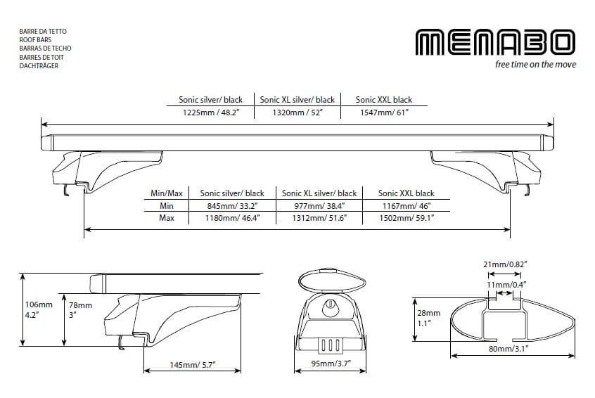 Bare transversale portbagaj Menabo Sonic Silver compatibile cu Alfa Romeo Stelvio 2017+ Bare transversale din aluminiu Menabo Sonic Silver va ofera o flexibilitate sporita in transportarea bagajelor datorita capacitatii de incarcare de 75 kg, dar si a canalului standard pentru prindere cu profil T a diferitelor accesorii. Barele au sectiune aerodinamica de 8 cmsi se potrivesc pentru toate tipurile de portbagaje (cutii portbagaj, suport bicicleta, suport schi, portbagaj caiac/canoe, etc.). Profilul aerodinamic in forma de aripa al barelor transversale ajuta la minimalizarea zgomotului si reduce rezistenta aerodinamica. Setul de bare transversale cuprinde toate elementele necesare pentru montarea pe barele longitudinale de tip sina (integrate) ale autoturismului. Sistemul de bare portbagaj cuprinde: - 2 x Bare transversale din aluminiu - 4 x Sisteme de prindere pe barele longitudinale - 4 x Sisteme antifurt + Chei - 1 x Cheie imbus (nu este necesara o alta unealta) Specificatii tehnice: - Lungime bara: 1200 mm - Inaltime bara: 30 mm - Latime bara: 80 mm - Greutate sistem: 4.8 kg - Material: aluminiu - Canal 20 mm pentru prindere T pe toata lungimea barei - Sistem antifurt: Da - Capacitate maxima incarcare: 75 kg - Aprobate TUV & ISO/PAS 11154:2006 Video montaj Menabo Sonic Filmuletele si pozele sunt cu titlu de prezentare. Pentru in montaj corect si rapid, folositi manualul de instructiuni inclus in pachet. Greutatea maxima de incarcare poate sa fie diferita in functie de marca si modelul masinii. Consultati caracteristicile tehnice date de producatorul autoturismului.