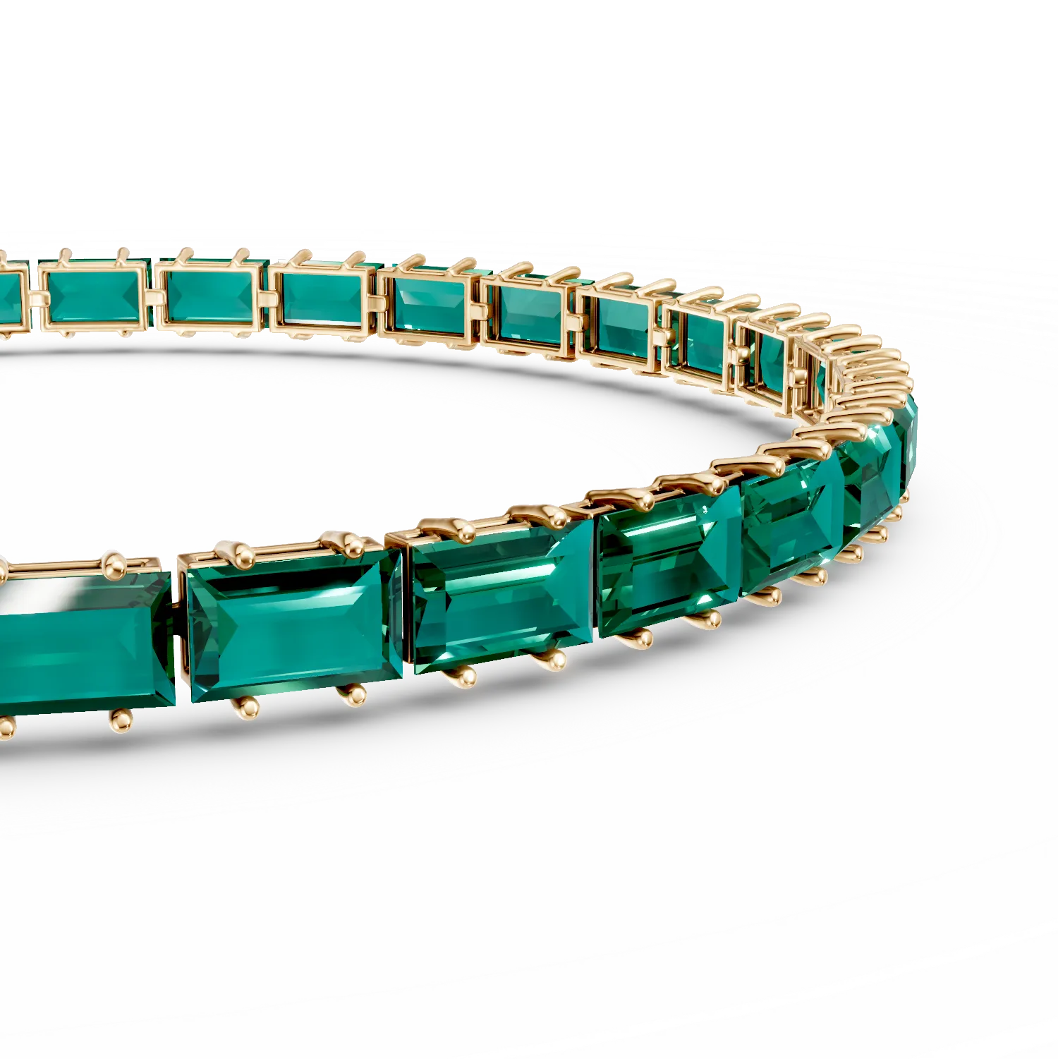 Stralucirea verde intensa prinde viata intr-o bratara tennis din aur galben, cu smaralde de 9.7ct create in laborator, taiate in forme rectangulare pentru un efect modern si grafic. Contrastul dintre nuanta calda a aurului si tonurile vibrante de verde transforma bratara intr-o piesa statement, usor de purtat atat in tinute casual-chic, cat si in aparitii sofisticate. Este bijuteria care vorbeste despre energie, stil si autenticitate. Alege rafinamentul contemporan si poarta povestea DAAR! Bijuteria face parte din colectia Lab Created Diamonds. Diamantele create in laborator sunt pietre pretioase concepute sub conditii de inalta presiune si caldura, identice cu cele ale diamantelor naturale.