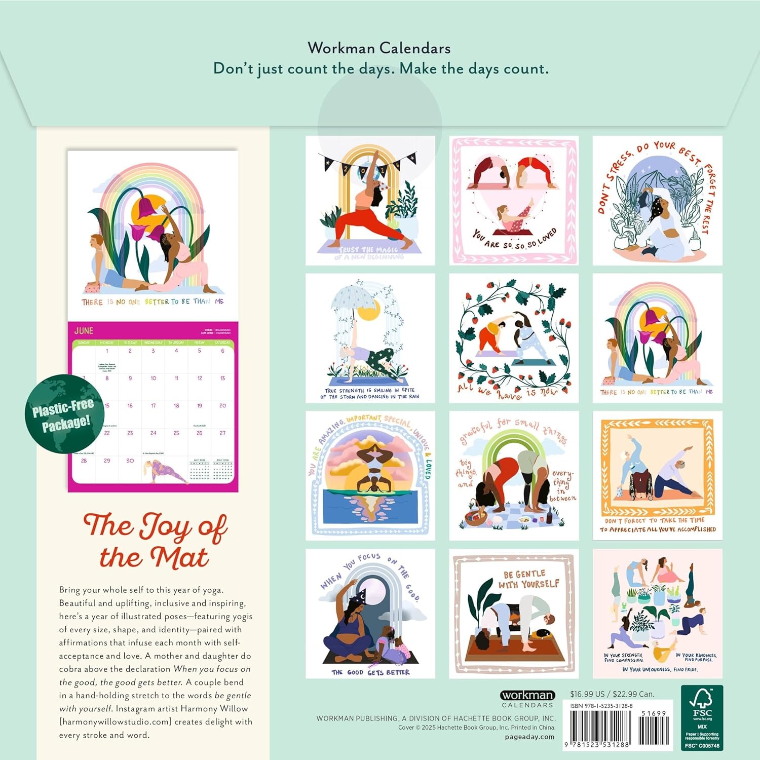 Calendar 2026 - Yoga Is My Happy PlaceUNIQUE YOGA CALENDAR: Celebrate inclusivity and body positivity with this calendar that shows theres room for everybody on the mat by featuring a wide range of body types and ages.INSPIRING ILLUSTRATIONS: Artist Harmony Willows delightful illustrations are paired with affirmations to bring color and positivity to each month.GREAT GIFT: Perfect for the yoga enthusiast in your life, or anyone who wants to get on the mat but might need a little encouragement.NOW PLASTIC-FREE!: Workman wall calendars are completely plastic-free! Now printed with an extended paper flap closed with a fully recyclable seal-no more shrink-wrap!