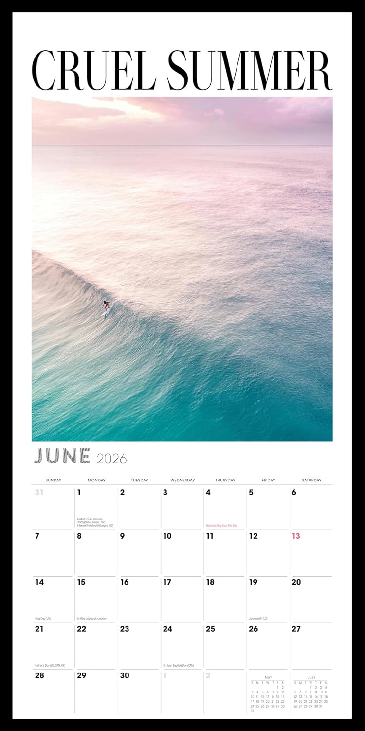Calendar 2026 - Forever & Always: Inspired by Taylor Swift Songs (Unofficial and Unauthorized)A wall calendar inspired by Taylor Swift songs, with stunning poster-like images each month featuring favorite song titles and beautiful art.