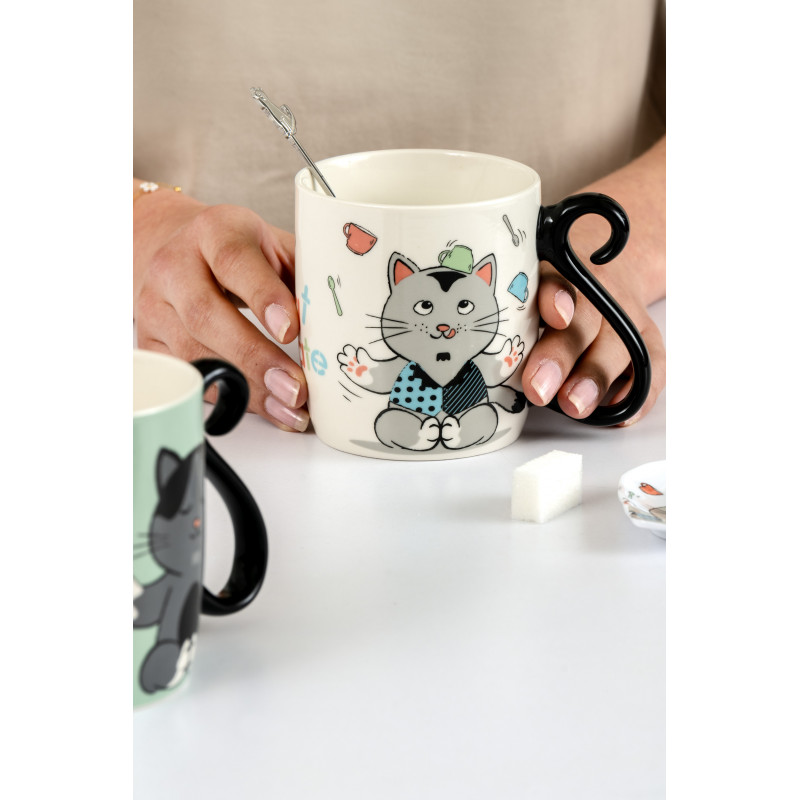 Cana Chatcrobate este o adevarata sarbatoare a agilitatii si jucausei feline,ofera o nota de umor si vioiciune pauzelor tale de cafea sau ceai.Caracteristici :Design jucaus: Cana este ilustrata cu pisici in plina miscare, care efectueaza piruete si capriole, intruchipand perfect spiritul lor jucaus si acrobatic.Inscriptie distractiva: „Chatcrobate” este scris intr-o tipografie dinamica care reflecta energia nemarginita a tovarasilor nostri feline.Practic si functional: Cu capacitatea sa ideala, aceasta cana este perfecta pentru a savura bauturile tale preferate, fie ca este vorba de ceai, cafea sau ciocolata calda.Usor de intretinut: Se potriveste la cuptorul cu microunde si la masina de spalat vase , este conceput pentru utilizare zilnica fara griji.