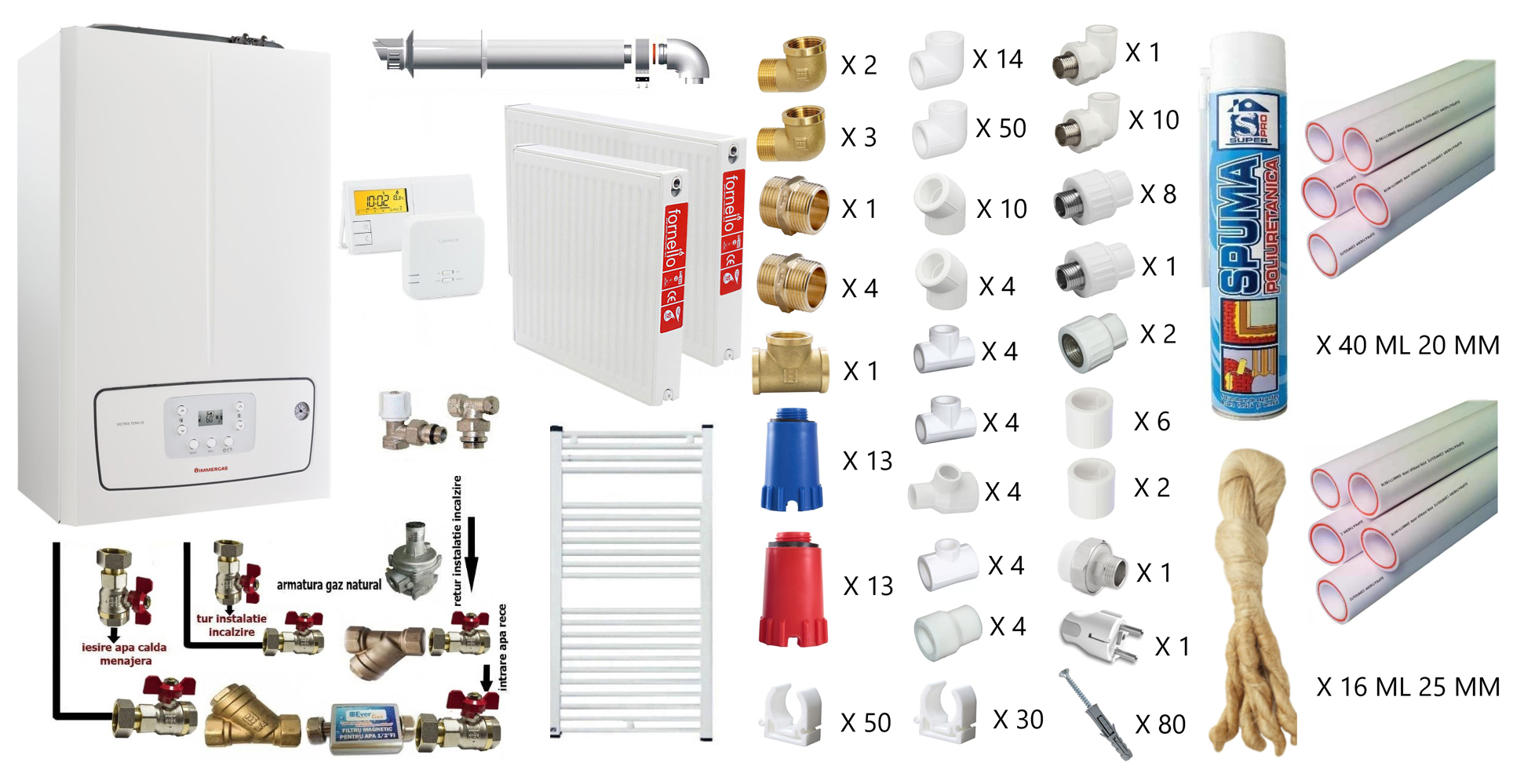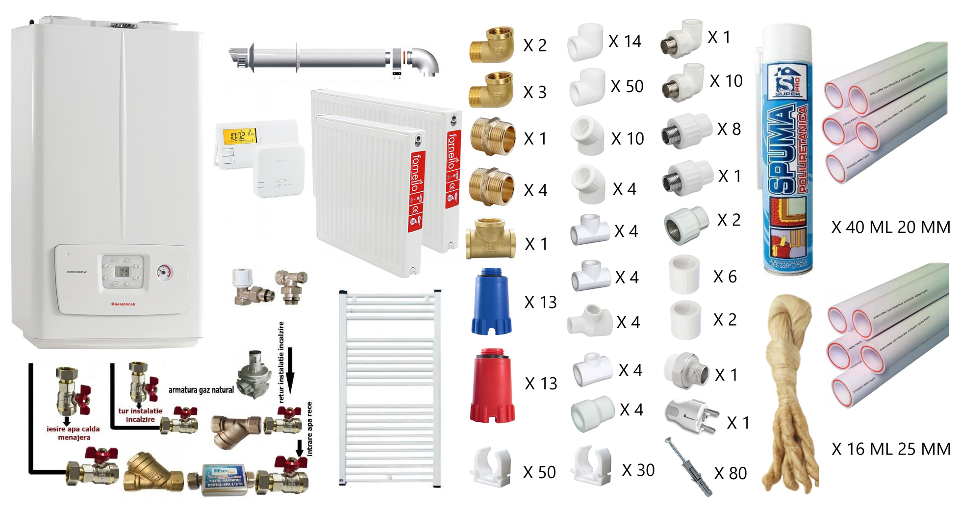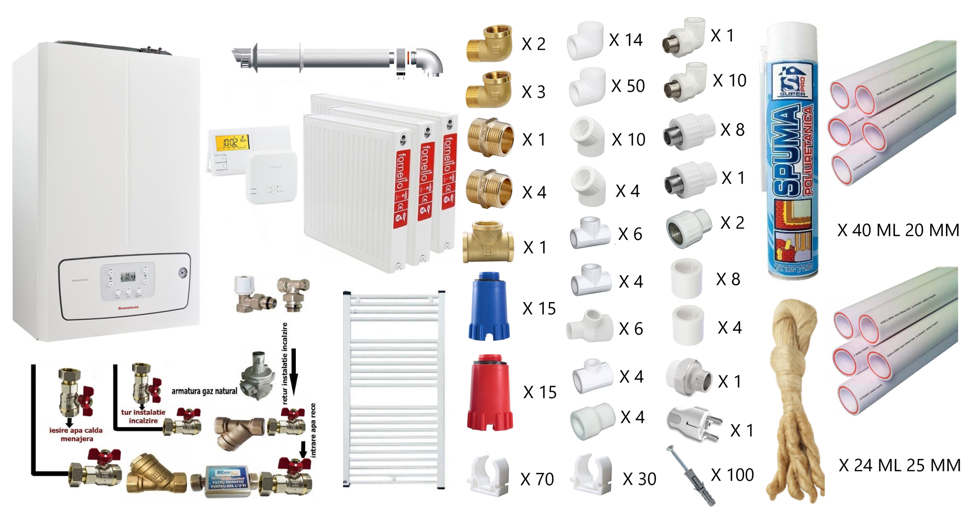 Centrala pe combustibil solid Ferroli FSB Pro N 30 kWFerroli FSB Pro N 30 este un cazan ce functioneaza pe lemne, carbune (cu putere calorica > 15 MJ/kg), brichete, tocatura lemnoasa, ori deseuri vegetale, agricole, forestiere, silvice si are o constructie eficienta cu 3 drumuri de fum. Acesta poate functiona si pe peleti, dar necesita achizitionarea unui kit arzator peleti (suplimentar).Cazanul Ferroli FSB Pro N 30 este proiectat in conformitate cu normele europene (EN 303/5) , iar grosimea pereților cazanului care intra in contact cu apa este de 5 mm. Usa superioara este prevazuta cu izolatie de fibra de sticla ignifuga cu o mica deschidere pentru reglarea aerului secundar.Incaperea in care urmeaza sa fie amplasat cazanul trebuie sa fie prevazuta cu aerisire. Trebuie asezat in asa fel incat sa existe acces pe toate laturile, conform schitei din manualul de utilizare.Este interzisa amplasarea cazanului in spatii de locuit (inclusiv holuri) !Ferroli FSB Pro N 30 vine insotit de termometru, tavita de cenusa si kit curatare.Regulatorul de tiraj si vana de amestec sunt obligatorii si nu este inclus in furnitura standard!Racordarea cazanului la un sistem de încălzire