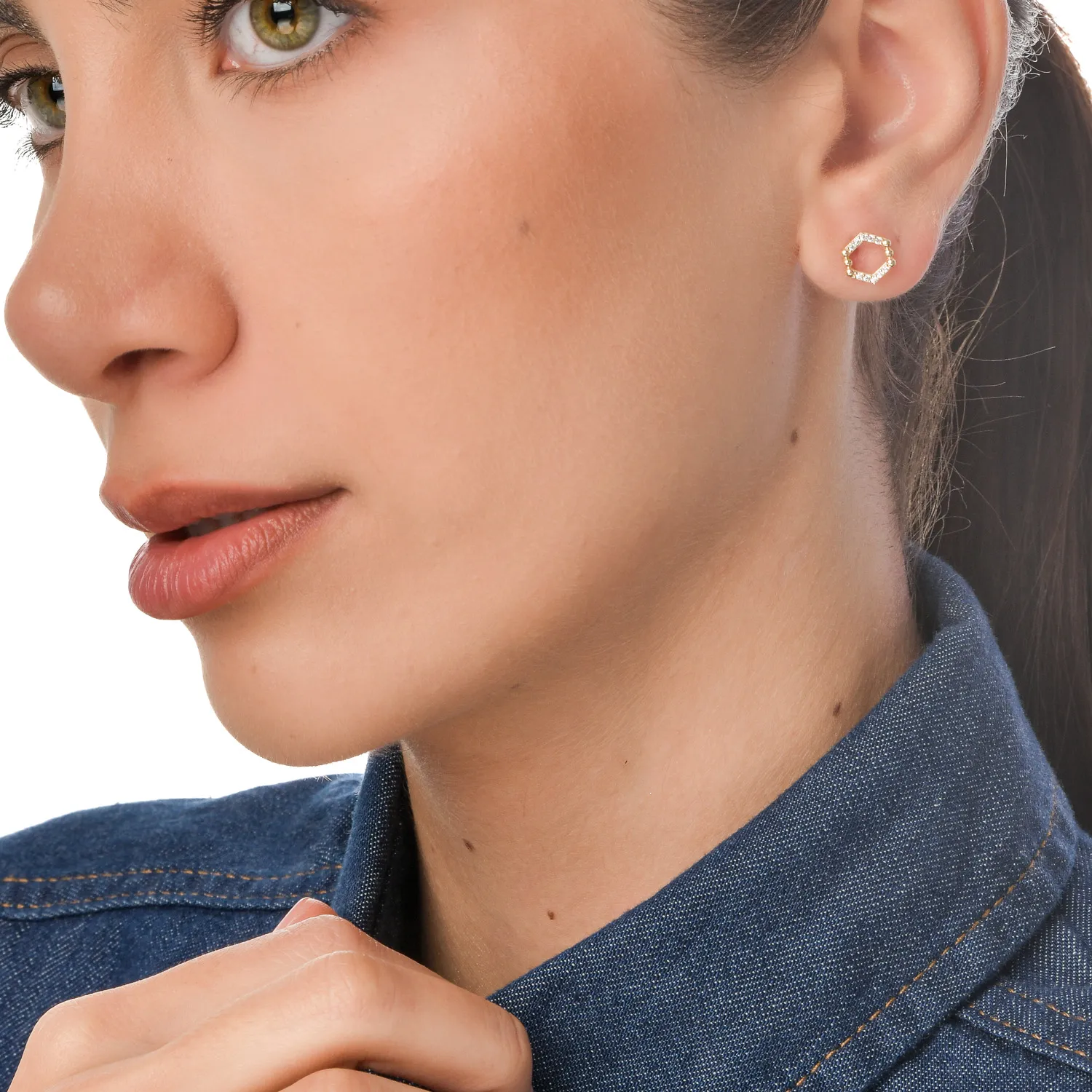 Bijuterii versatile din aur, intr-un mix de stiluri si forme. Fii unicat cu aceasta pereche de cercei geometrici din aur galben cu zirconii din colectia noastra. Fiecare detaliu este creat pentru a te scoate in evidenta. Alege DAAR!