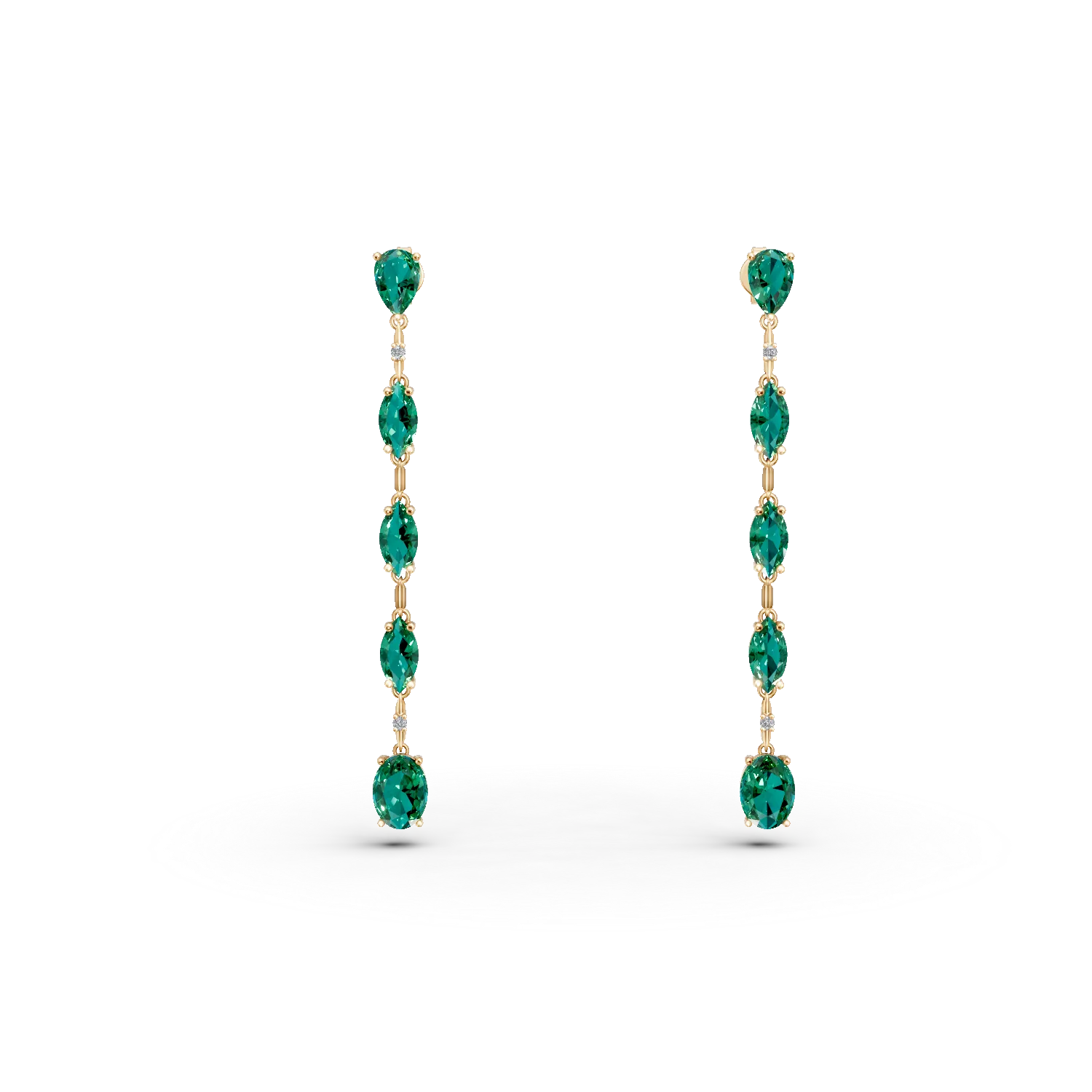 Cerceii lungi din aur galben cu smaralde si diamante de 7.1ct create in laborator surprind prin designul elegant si fluiditate. Smaraldele de un verde intens, impreuna cu diamantele, creeaza un joc vizual plin de energie si rafinament. Contrastul dintre nuanta calda a aurului si stralucirea pietrelor transforma acesti cercei intr-o piesa moderna, dar usor de purtat la evenimente sau aparitii speciale. Exprima-ti stilul cu o bijuterie care vorbeste despre eleganta autentica. Descopera rafinamentul contemporan cu DAAR! Bijuteria face parte din colectia Lab Created Diamonds. Diamantele create in laborator sunt pietre pretioase concepute sub conditii de inalta presiune si caldura, identice cu cele ale diamantelor naturale.