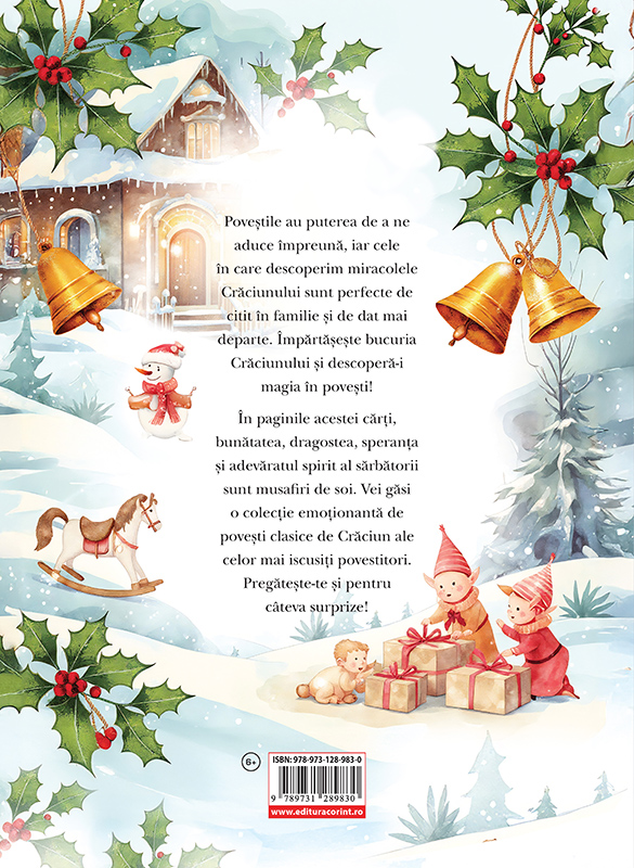 #html-body [data-pb-style=YJT7S9X]{justify-content:flex-start;display:flex;flex-direction:column;background-position:left top;background-size:cover;background-repeat:no-repeat;background-attachment:scroll}Poveștile au cea mai mare putere de a ne aduce împreună. Iar cele în care descoperim Crăciunul și miracolele din jurul său sunt narațiunile perfecte de citit în familie și de dat mai departe. Împărtășește bucuria Crăciunului și descoperă-i magia în povești care sfidează granițele timpului! În paginile acestei cărți, bunătatea, dragostea, speranța și adevăratul spirit al sărbătorii sunt musafiri de soi. Vei găsi o colecție emoționantă de povești ilustrate clasice de Crăciun pentru copii ale celor mai iscusiți povestitori, precum Hans Christian Andersen, Lev Tolstoi sau L. Frank Baum. Pregătește-te și pentru câteva surprize!