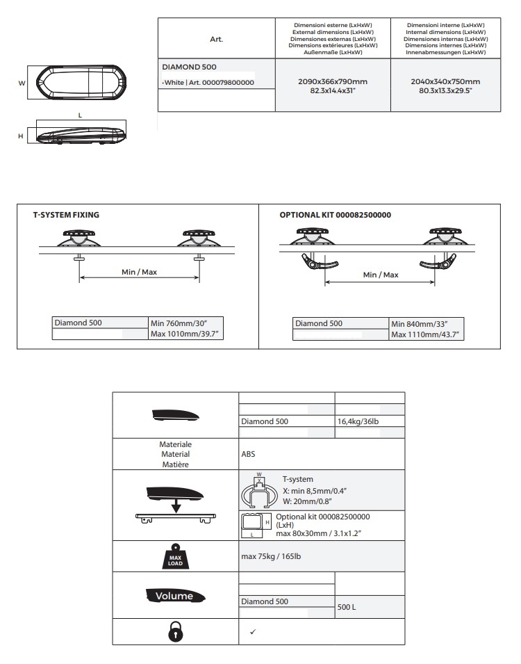 Cutie plafon Menabo Diamond 500litri, alba, 209x79x36cm Calatoriile si drumurile lungi pot fi acum mai usoare si mai placute. Alegand sa folosesti cutia portbagaj Menabo Diamond 500 White vei putea transporta cu tine oricate bagaje vrei. Cutia auto Menabo are o capacitate maxima de transport de 75 de kilograme sau 500 de litri volumetrici. Montajul cutiei se face rapid si usor cu ajutorul sistemului Quick Fixing System. Practic aceasta se ataseaza de barele transversale ale autoturismului tau cu ajutorul T-urilor de 20 de milimetri care se insereaza pe canalele barelor auto. Diamond 500 este fabricata din plastic ABS finisat si are urmatoarele dimensiuni exterioare: Intaltime exterioara – 36,6 cm Lungime exterioara – 209 cm Latime exterioara – 79 cm Menabo Diamond vine dotata si cu sistem antifurt integrat pentru o siguranta in plus a bagajelor tale. Cutia cantareste 19,6 kg si se deschide pe o singura parte. Diamond este testata, certificata si omologata TUV test si City Crash test. Specificatii tehnice cutie portbagaj Diamond 500 White Volum cutie 500 litri Capacitate maxima de incarcare 75 kg Material Plastic ABS Culoare Alb Lucios Lungime exterioara 208.4 cm Latime exterioara 77.7 cm Inaltime exterioara 36.6 cm Sistem prindere Sistem T Quick Fix de 20 mm inclus Sistem clema Quick Fix optional art. 000082500000 Antifurt Da Deschidere Pe o parte Greutate cutie 19.6 Kg Dimensiuni ambalaj 209x79x36 cm Compatibila cu bare Menabo Omega Otel Da Compatibila cu bare Menabo Omega Aluminiu Da Compatibila cu bare Menabo Tema Otel Da Compatibila cu bare Menabo Tema Aluminiu Da Compatibila cu Bare Menabo Delta Da Compatibila cu Bare Menabo Brio Cu adaptor 000082500000 Compatibila cu Bare Menabo Sherman Da Compatibila cu Bare Menabo Raven Cu adaptor 000082500000 Compatibila cu Bare Menabo Jackson Da Compatibila cu Bare Menabo Elefant Da Compatibila cu Bare Menabo Tiger Da Compatibila cu Bare Menabo Leopard Da Compatibila cu Bare Menabo Lince Da Compatibila cu Bare Menabo Ariete Da Compatibila cu Bare Menabo Professional Da Compatibila cu Bare K39 - K1 Aluminiu Da Compatibila cu Bare K39 - K1 Otel Cu adaptor 000082500000 Compatibila cu Bare K39 Lion Da Compatibila cu Bare K39 King Cu adaptor 000082500000 Compatibila cu Bare Thule Sqarebar Da Compatibila cu Bare Thule Wingbar Da Compatibila cu Bare Thule Probar Da Compatibila cu Bare Thule Slidebar Da Compatibila cu Bare Yakima ThruBar/FlushBar Da Compatibila cu Bare Mont Blanc Xplore Da Compatibila cu alte branduri Trimite o intrebare Video prezentare cutie portbagaj Menabo Diamond