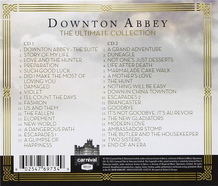 CD 1: 1. Downton Abbey - The Suite 2. Story Of My Life 3. Love And The Hunter 4. Preparation 5. Such Good Luck 6. Did I Make The Most of Loving You 7. Damaged 8. Violet 9. Ill Count The Days 10. Fashion 11. Us And Them 12. The Fallen 13. Elopement 14. New World 15. A Dangerous Path 16. Escapades 1 17. A Glimpse Of Happiness CD 2: 1. A Grand Adventure 2. Duneagle 3. Not Ones Just Desserts 4. Life After Death 5. Marmalade Cake Walk 6. A Mothers Love 7. The Hunt 8. Nothing Will Be Easy 9. Down in China Townton 10. Escapades 2 11. Brancaster 12. Goodbye 13. Its Not Goodbye Its Au Revoir 14. The New Gladiators 15. Modern love 16. Ambassador Stomp 17. The Butler And The Housekeeper 18. Two Sisters 19. End OF An Era