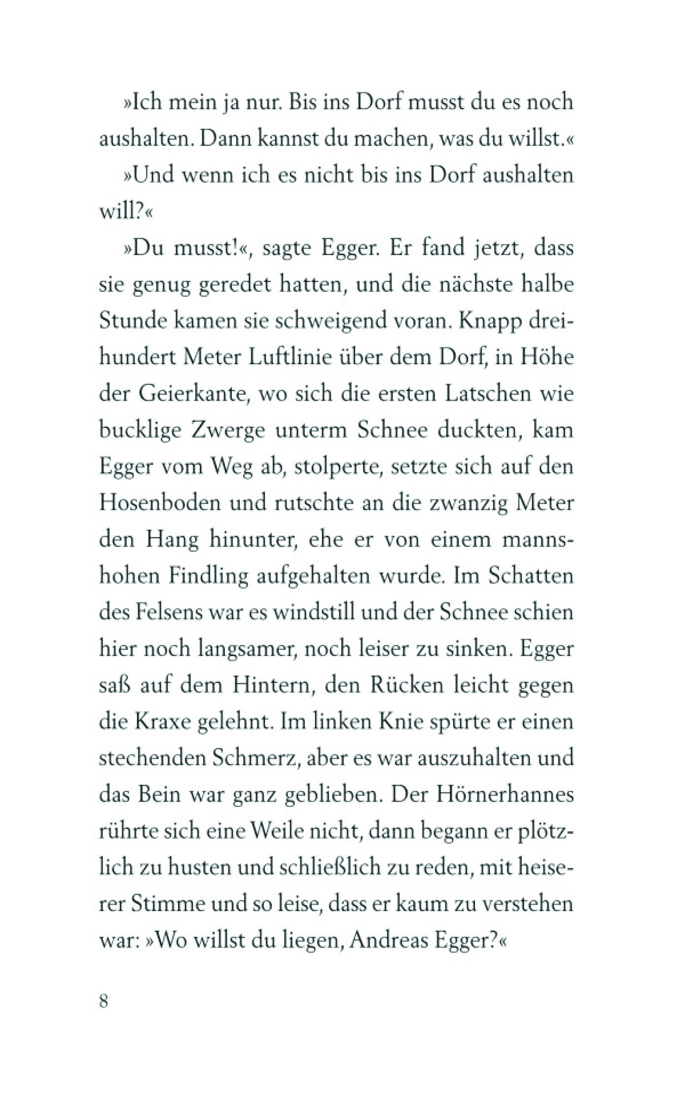 Als Andreas Egger in das Tal kommt, in dem er sein Leben verbringen wird, ist er vier Jahre alt, ungefahr - so genau weiß das keiner. Er wachst zu einem gestandenen Hilfsknecht heran und schließt sich als junger Mann einem Arbeitstrupp an, der eine der ersten Bergbahnen baut und mit der Elektrizitat auch das Licht und den Larm in das Tal bringt. Dann kommt der Tag, an dem Egger zum ersten Mal vor Marie steht, der Liebe seines Lebens, die er jedoch wieder verlieren wird. Erst viele Jahre spater, als Egger seinen letzten Weg antritt, ist sie noch einmal bei ihm. Und er, uber den die Zeit langst hinweggegangen ist, blickt mit Staunen auf die Jahre, die hinter ihm liegen.