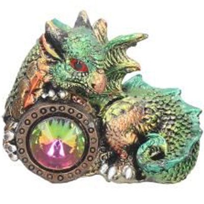 Turnat in rasina de cea mai buna calitate si pictate manual cu mare grija, aceste dragon mic si metalizat este completarea perfecta pentru casa oricarui iubitor de fantezie.