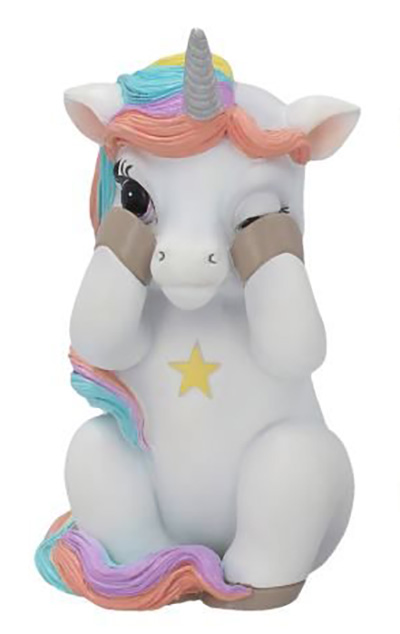 Acest adorabil unicorn, turnat in cea mai fina rasina si pictat manual, aduce cu siguranta un strop de lumina si veselie in orice casa.Ilustrand faimosul principiu al lui Confucius „Nu vezi raul, nu vorbesti de rau, nu auzi raul”, acesti „cutiecorns” reprezinta decorasiunea perfecta pentru orice semineu sau spatiu de expunere.