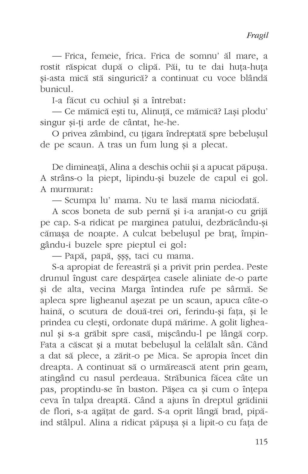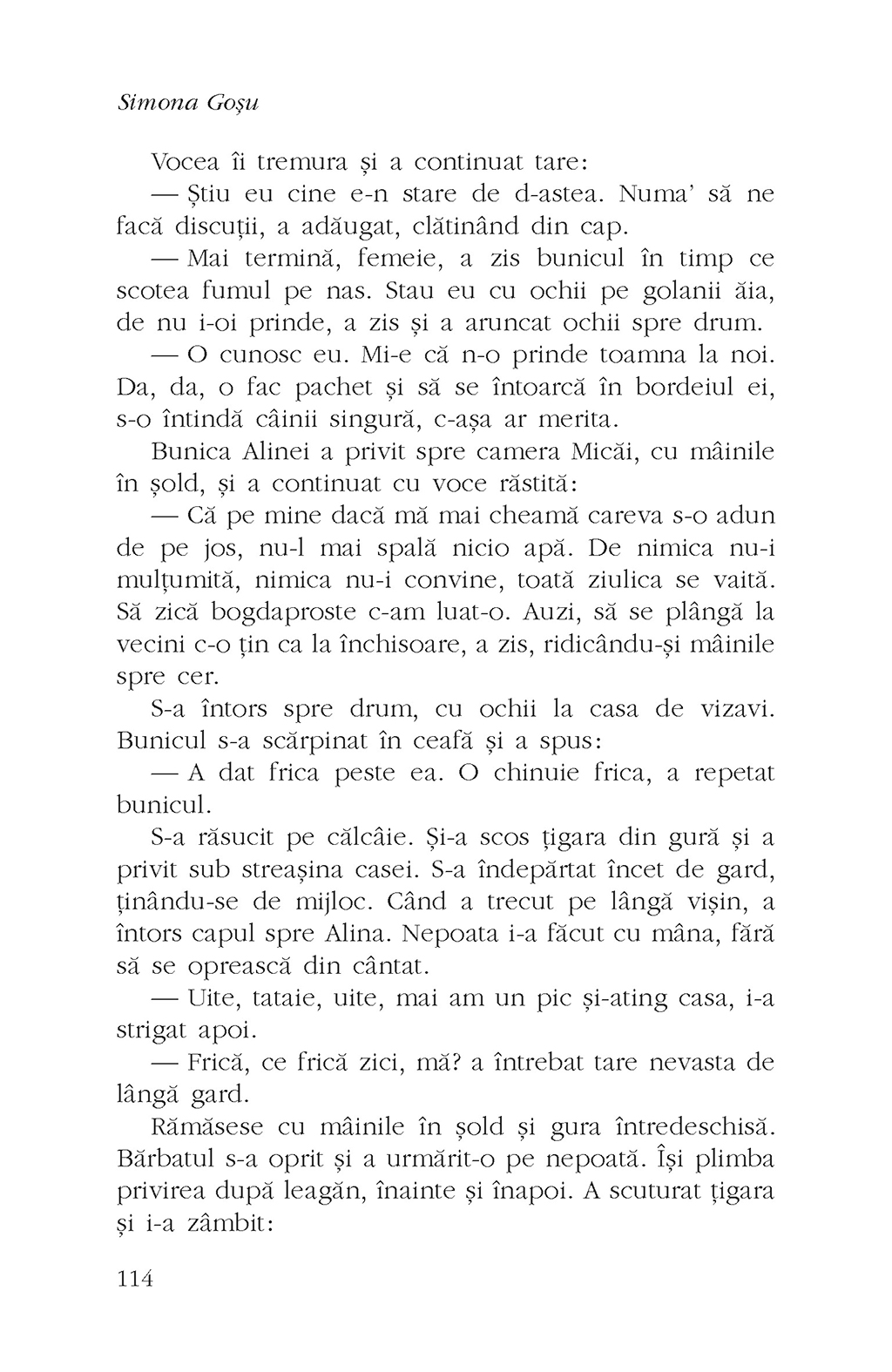 „Cu aceste remarcabile proze de debut, Simona Gosu nu datoreaza nimic traditiei literare de la noi. Subiectele ei sint pe cit de actuale, pe atit de inedite, subsumate temei vulnerabilitatii fara sa faca vreo concesie asteptarilor sau sensibilitatii cititorilor: familii monoparentale depasite de situatie, maternitate nedorita sau frici neintelese, copii lasati la cheremul instinctelor sau al hazardului... Dramatismul situatiilor fiind egalat doar de finetea cu care se desfasoara, caci sint mult calm in asteptarea cruzimii si multa subtilitate in preajma raului. Cit despre limbaj, rareori cineva a reusit sa «taie» atit de adinc, lasind urme atit de putin vizibile. Uimire, placere si admiratie – asta am simtit citind, recitind si povestind si altora aceste povestiri, printre cele mai bune scrise la noi in ultimii ani. Un debut memorabil, care – cred – va marca proza scurta romaneasca.” (Marius Chivu)