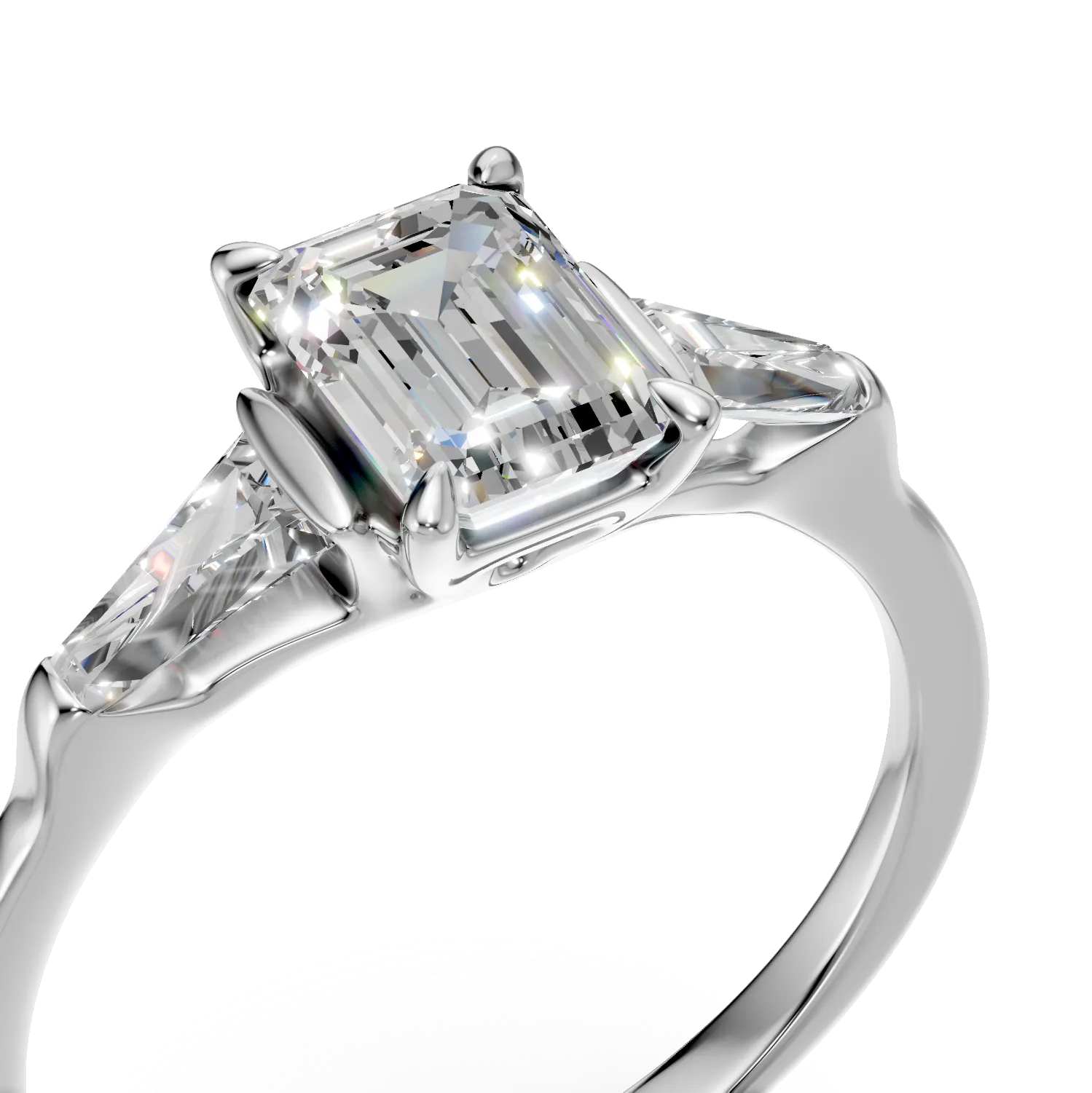 Un design rafinat, cu accente moderne, defineste acest inel de logodna din aur alb, unde diamantele de 1ct create in laborator, cu taieturi emerald si baguette, creeaza un efect luminos si arhitectural. Liniile curate si proportiile echilibrate pun in valoare claritatea fiecarei pietre, oferind o interpretare actuala a unui simbol clasic. O piesa eleganta, potrivita pentru un moment plin de semnificatie. Alege DAAR! Bijuteria face parte din colectia Lab Created Diamonds. Diamantele create in laborator sunt pietre pretioase concepute sub conditii de inalta presiune si caldura, identice cu cele ale diamantelor naturale.