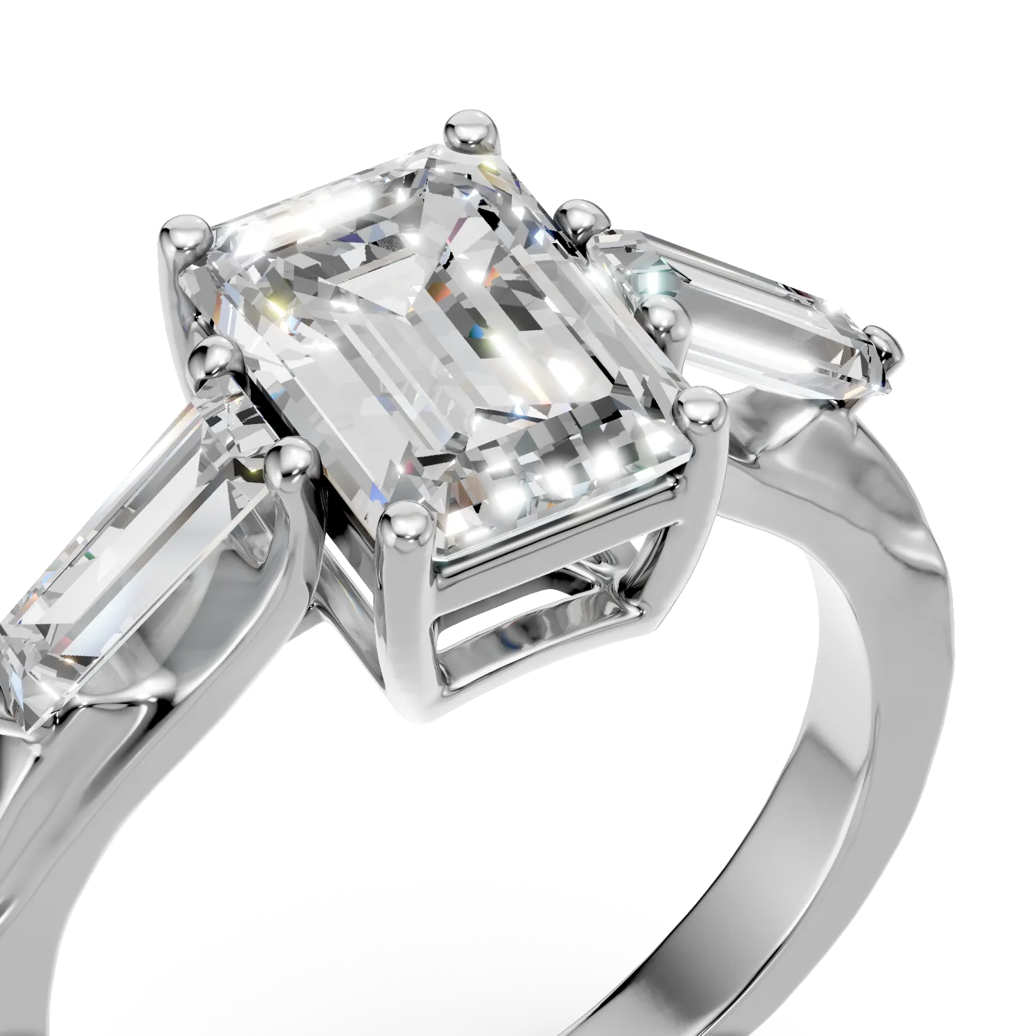 Rafinat si plin de stralucire, acest inel din aur alb cu diamante de 2.5ct create in laborator impresioneaza prin designul sau elegant. Piatra centrala cu taietura emerald este pusa in valoare de diamantele laterale, creand un efect luminos si modern. Perfect pentru a marca momente speciale sau pentru a completa un look premium, este bijuteria care reflecta feminitate si stil. Descopera-l acum in colectia DAAR! Bijuteria face parte din colectia Lab Created Diamonds. Diamantele create in laborator sunt pietre pretioase concepute sub conditii de inalta presiune si caldura, identice cu cele ale diamantelor naturale.