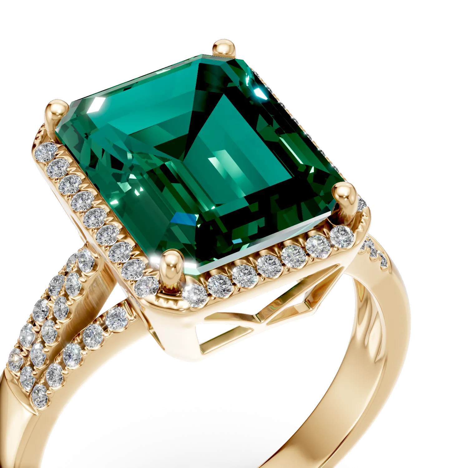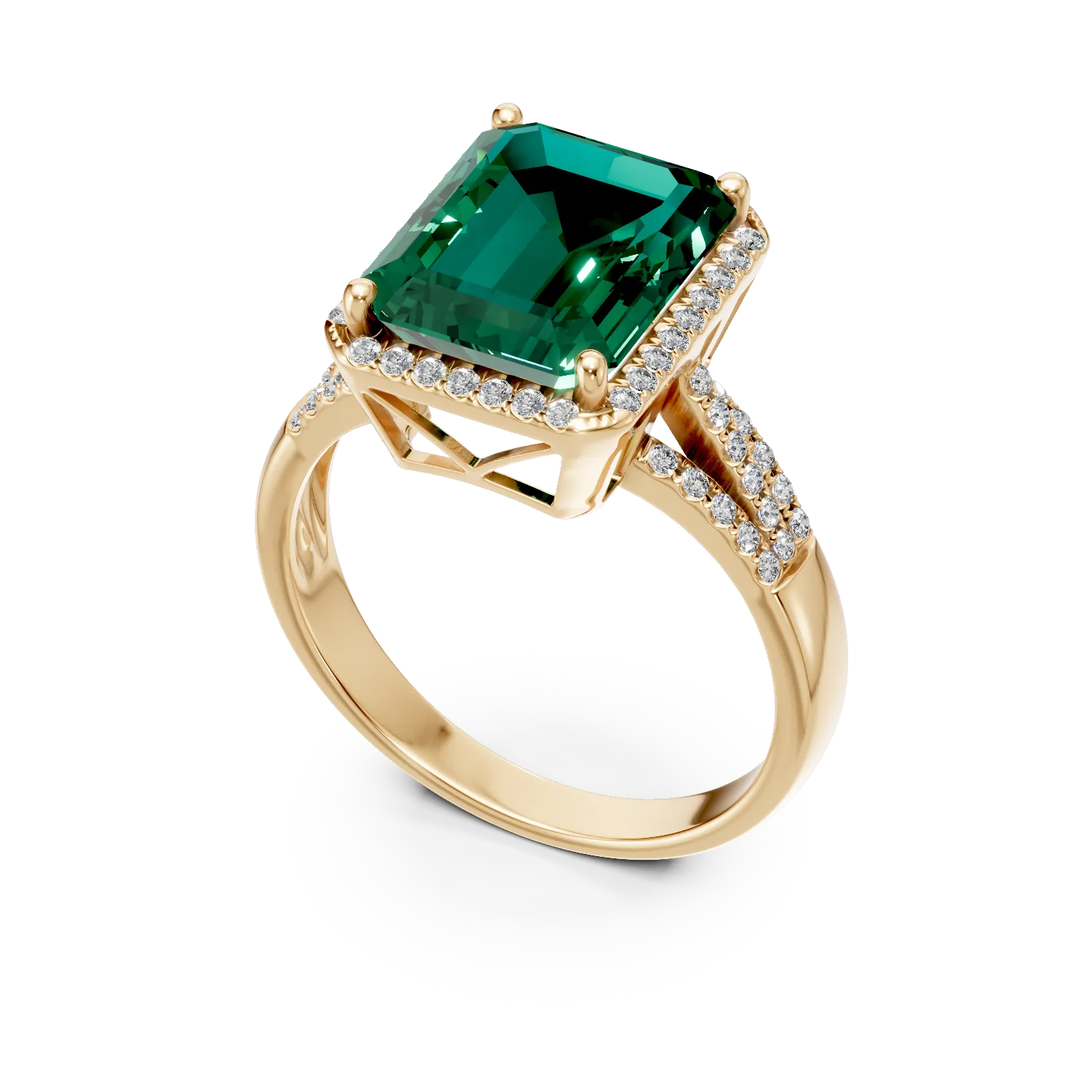 Bijuteriile captiveaza prin designuri unice, mereu surprinzatoare. Inelul din aur galben cu smarald si diamante create in laborator de 6.1ct reprezinta povestea pasiunii pentru farmec si eleganta. Traieste momentele speciale cu bijuteriile DAAR. Stralucirea luxurianta a diamantelor nu a fost niciodata mai aproape de tine. Sarbatoreste inovatia cu Lab Created Diamonds. Diamantele concepute in laborator sunt dovedite a fi identice cu cele naturale.