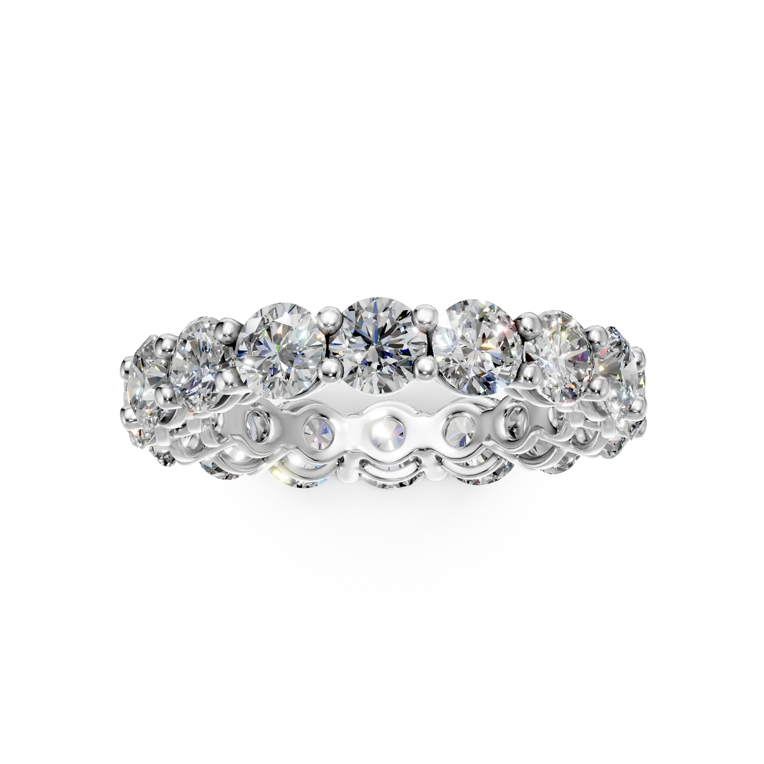 Spectaculos si plin de stralucire, acest inel eternity din aur alb cu diamante de 4.1ct create in laborator este bijuteria care atrage toate privirile. Designul sau simbolizeaza eleganta fara sfarsit, iar intensitatea diamantelor il transforma intr-o piesa statement. Perfect pentru momentele speciale, dar si pentru a adauga rafinament look-ului de zi, este accesoriul care reflecta un stil fresh si actual. Descopera-l acum in colectia DAAR! Bijuteria face parte din colectia Lab Created Diamonds. Diamantele create in laborator sunt pietre pretioase concepute sub conditii de inalta presiune si caldura, identice cu cele ale diamantelor naturale.
