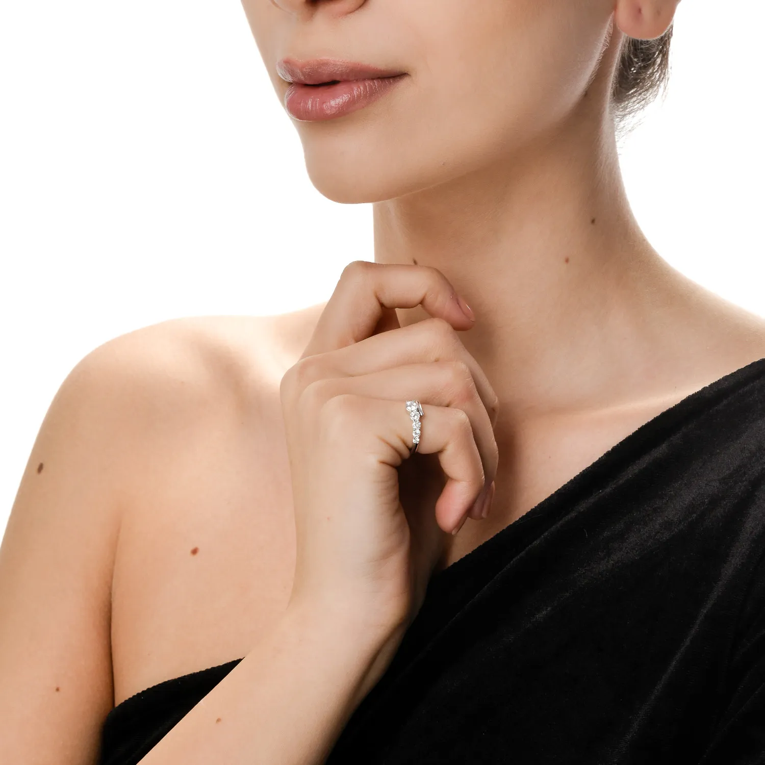 Un design modern defineste acest inel geometric din aur alb, unde diamantele de 0.5ct create in laborator sunt puse in valoare printr-o montura fina si un joc ordonat al formelor. Linia asimetrica aduce un aer actual, iar combinatia dintre aurul alb si stralucirea diamantelor creeaza un efect echilibrat, potrivit pentru tinute minimaliste sau momente speciale. O piesa versatila, expresiva si usor de purtat in fiecare zi. Descopera eleganta DAAR! Bijuteria face parte din colectia Lab Created Diamonds. Diamantele create in laborator sunt pietre pretioase concepute sub conditii de inalta presiune si caldura, identice cu cele ale diamantelor naturale.