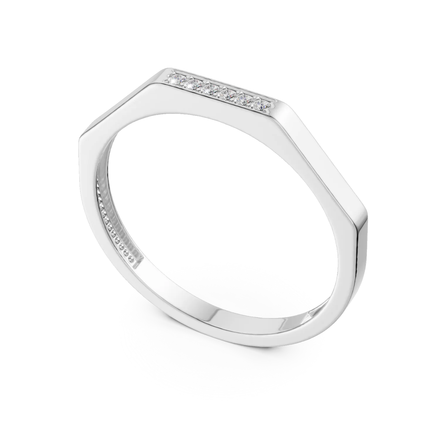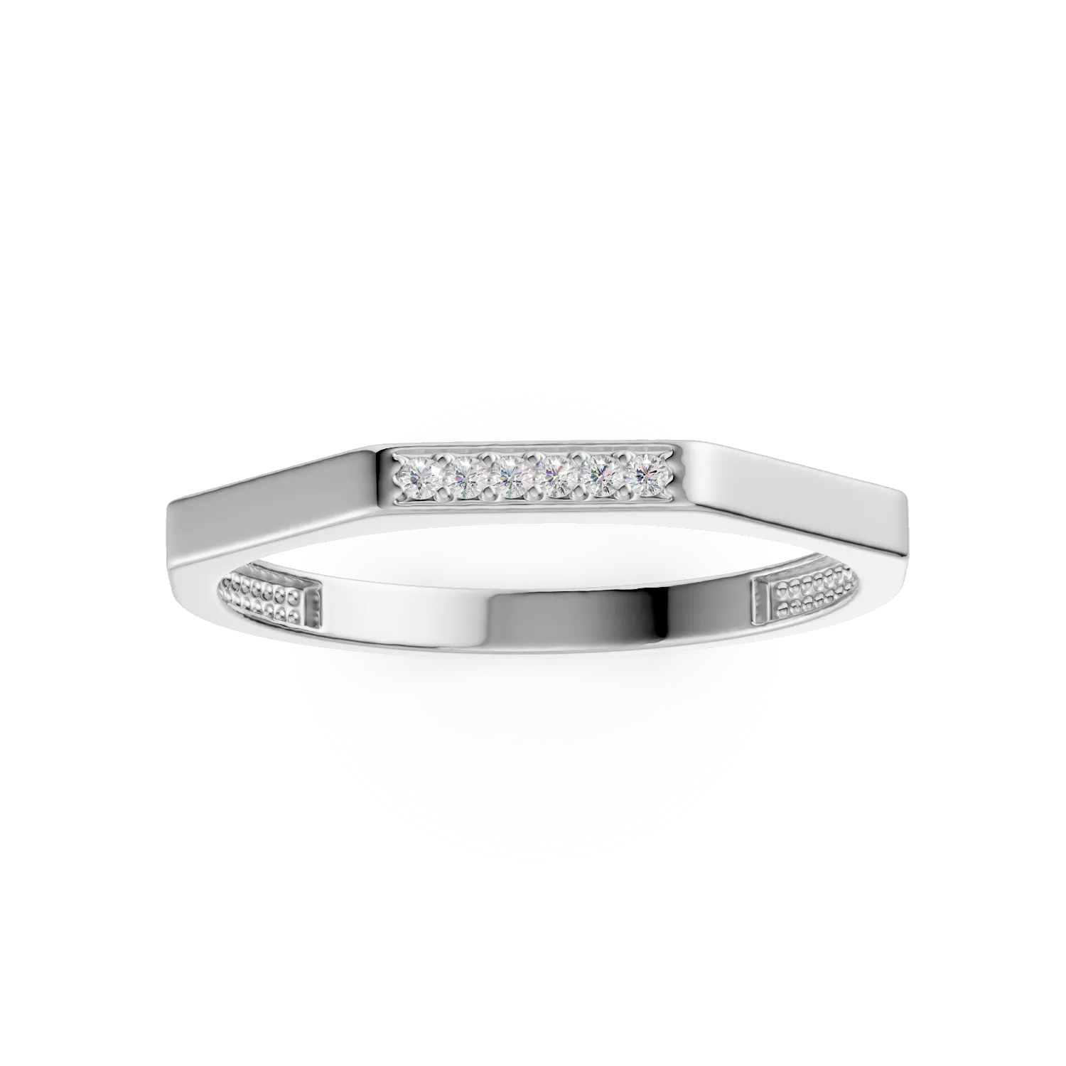Bijuteriile captiveaza prin designuri unice mereu surprinzatoare. Pentru conturarea unui stil unic inelul minimalist din aur alb cu zirconii microsetting este inspiratia perfecta. Descopera-ti creativitatea cu bijuteriile DAAR.