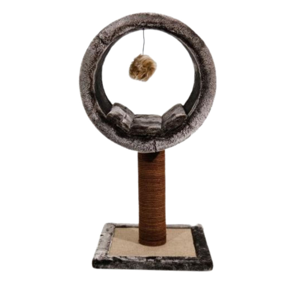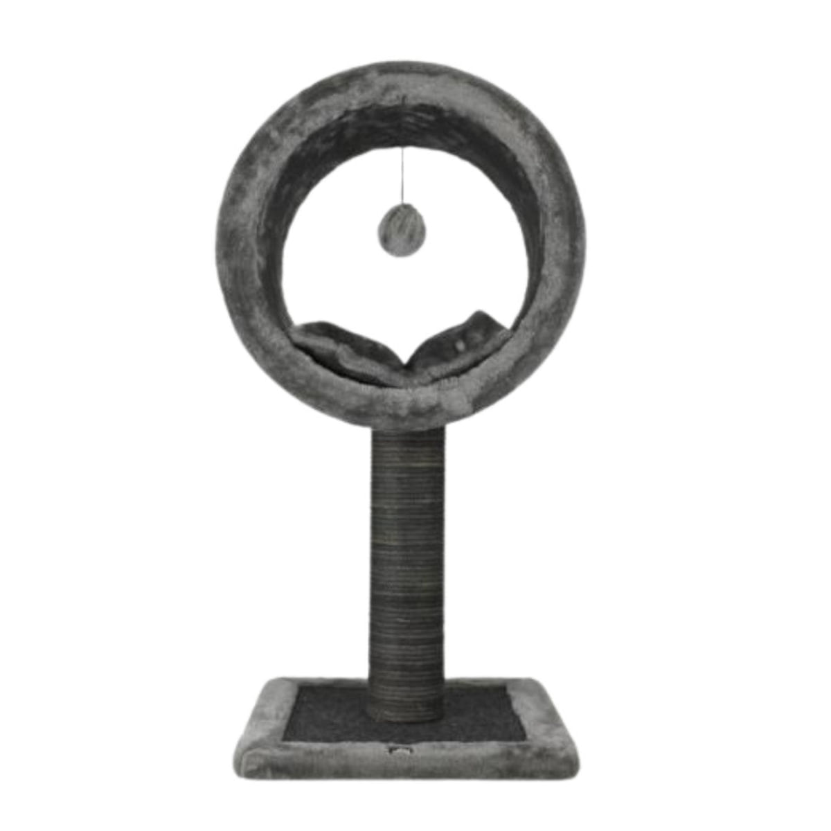 SHAW, stâlp de zgâriat cilindric pisici, 1 etaj, MDF și sisal, elemente atârnate, gri, 42x42x86cm
