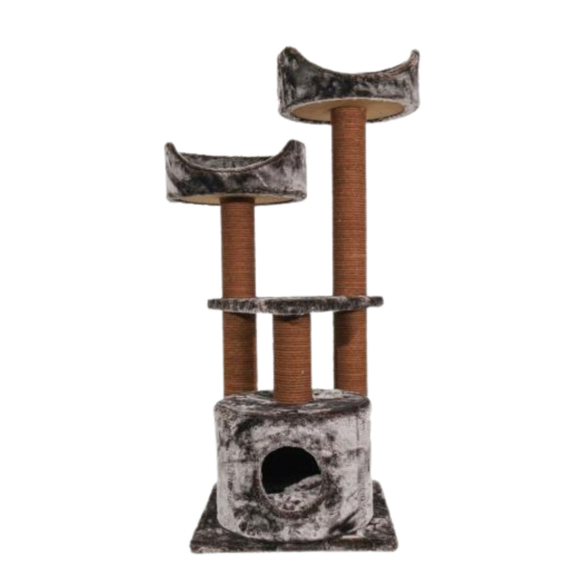 SHAW Toulouse, ansamblu de joacă pisici, 3 etaje, 1 căsuța, MDF și pluș, elemente de zgâriat, maro, 70x70x120cm