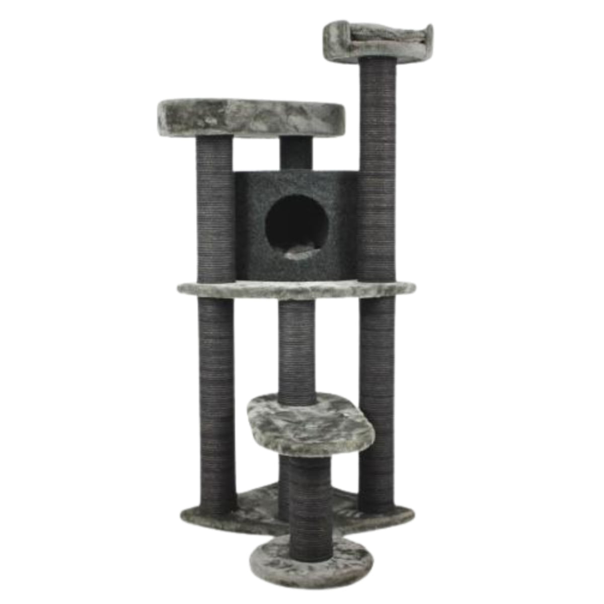 SHAW Roma, ansamblu de joacă pisici, 4 etaje, 1 căsuța, MDF și pluș, elemente de zgâriat, gri, 60x60x134cm