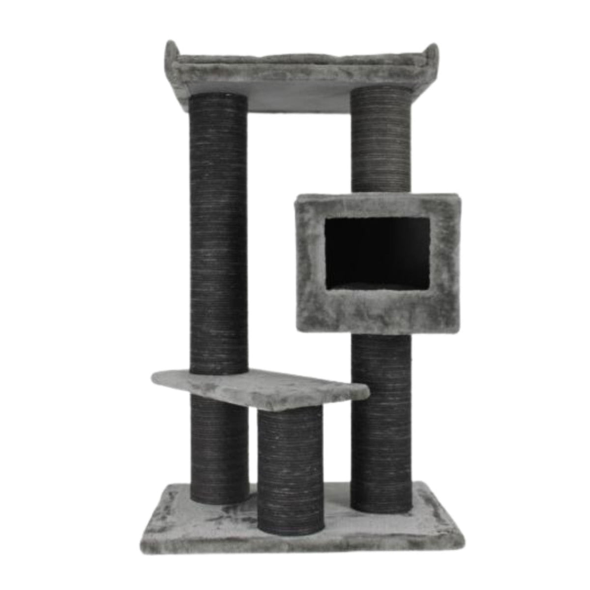 SHAW Toulouse, ansamblu de joacă pisici, 3 etaje, 1 căsuța, MDF și pluș, elemente de zgâriat, gri, 70x70x120cm