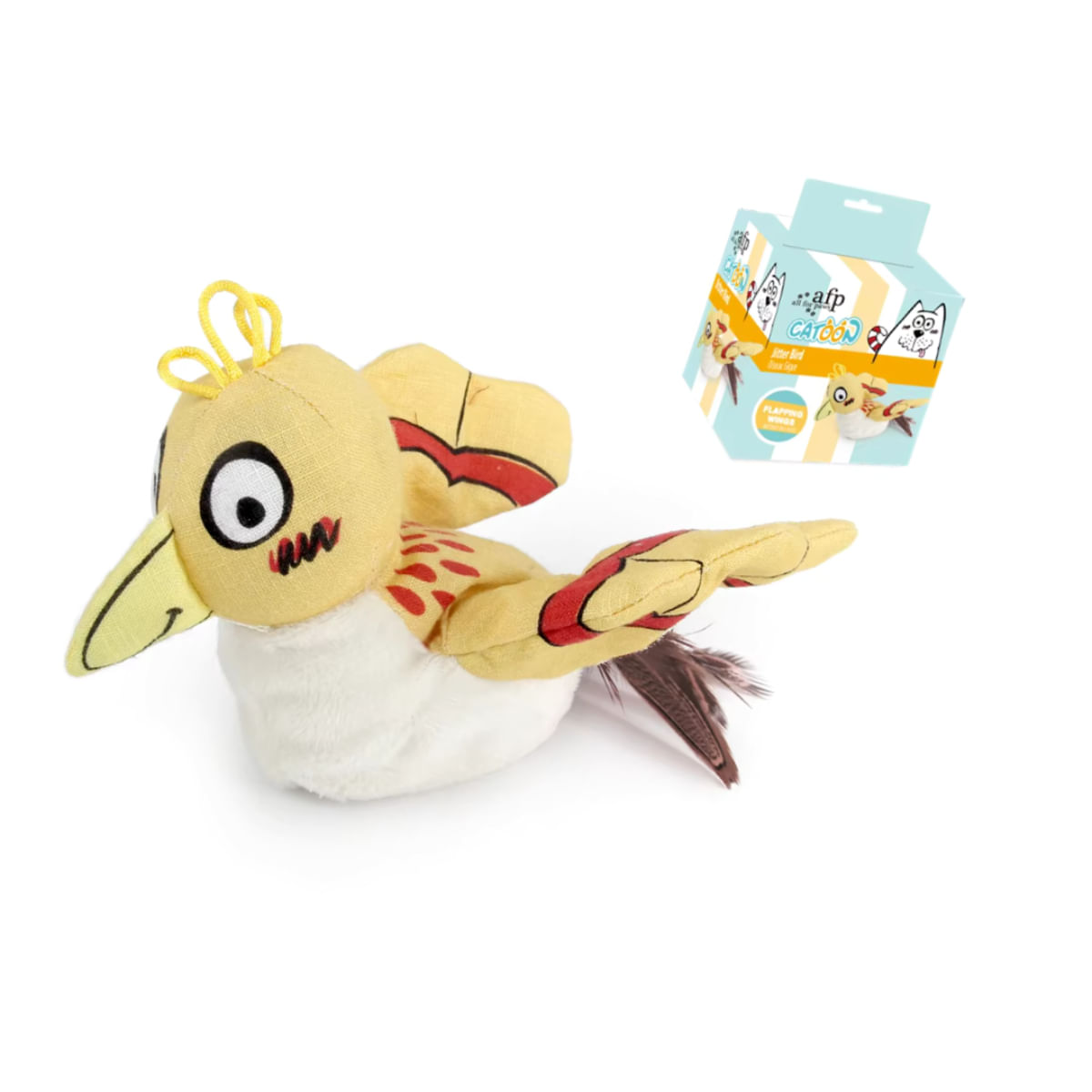 SHAW Pasăre cu Aripi Batante & Pene Naturale, jucărie interactivă pisici, inteligente, cu sunet, textil, galben, 17x20x7cm, 1buc