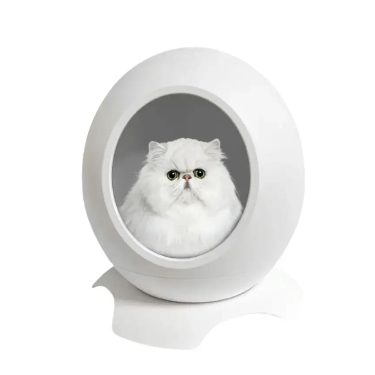 SHAW Pătuț Smart cu funcții de încălzire, aplicație mobilă, reglare temperatură și muzică, căsuța rotundă pisici, PVC, alb, 43x45.5x43cm