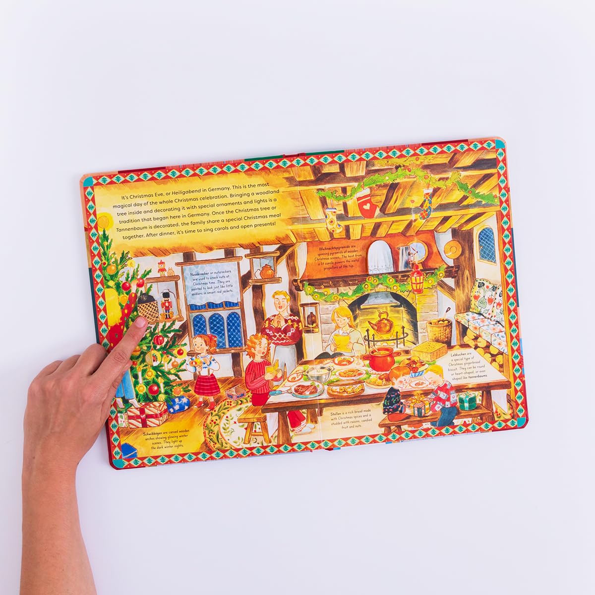 Discover the unique ways children across the world celebrate Christmas in this captivating festive guide with 144 flaps to open.This fact-packed around-the-world adventure is designed to be revisited year after year in the lead-up to Christmas, reminding readers all about the value of other cultures and the importance of accepting differences.Each striking two-page spread covers the traditional Christmas foods, decorations and symbols of 10 different countries, complete with warm and merry illustrations to get readers ready for this wonderful celebration of love, harmony and goodwill to all.On this fascinating, festive journey across continents:Visit a Christmas market in GermanyIn Italy, have a feast of seven fishes on Christmas EveHang out stockings on Christmas Eve in the UKGo to a special Christmas Ganna procession in EthiopiaIn France, put your shoes by the fire and open your presents on Christmas EveGo to a St Lucias day procession and have a smorgasbord on Julafton in NorwayBe dazzled by the Nochebuena light displays in the PhilippinesIn India, go to midnight mass and prepare a special Christmas Biryani with spices and nuts…and have a BBQ in the sunshine in Australia!Whether its discovering the magic of Yule in Scandinavia, the colourful Pinatas of Mexico, or the time-honoured rituals of Ethiopia, this Christmas journey is a heart-warming reminder of the universal joy and togetherness that Christmas embodies around the globe. Get ready to lift the flaps and be transported into a world of festive wonder, spreading the holiday spirit far and wide.