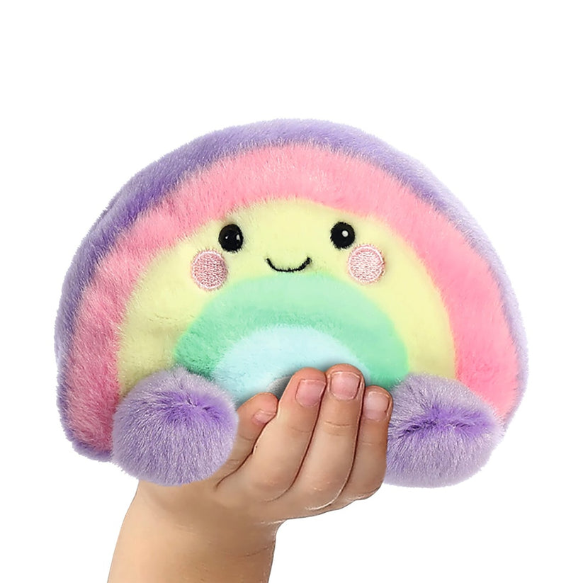 Jucarie de plus - Aurora Palm Pals - Curcubeu Aurora Palm Pals – Jucarie de plus Curcubeu, 13 cm este un plus vesel si plin de culoare, creat pentru a incapea perfect in palma, cu un design inspirat de forma unui curcubeu.Culorile vii si expresia prietenoasa ii ofera un aspect pozitiv si energizant, fiind ideal pentru a aduce un strop de buna dispozitie in orice moment al zilei.Realizat din materiale moi si placute la atingere, acest plus este potrivit atat pentru joaca, cat si ca decor simpatic pe birou, raft sau noptiera.Acesti prieteni de plus, extrem de fini si placuti la atingere, imbina sustenabilitatea cu distractia, fiind alegerea ideala atat pentru copii, cat si pentru adulti.Palm Pals sunt jucarii de plus fermecatoare, care se potrivesc perfect in palma. Ofera o experienta placuta de joaca si imbratisare. Realizate din materiale de inalta calitate, se remarca prin textura deosebit de moale si confortabila.Caracteristici:textura foarte moale si placuta la atingereplus usor de intretinutpotrivit pentru spalare manualainitiativa ecologica: fibrele interioare si materialele de umplutura sunt realizate din plastic reciclat