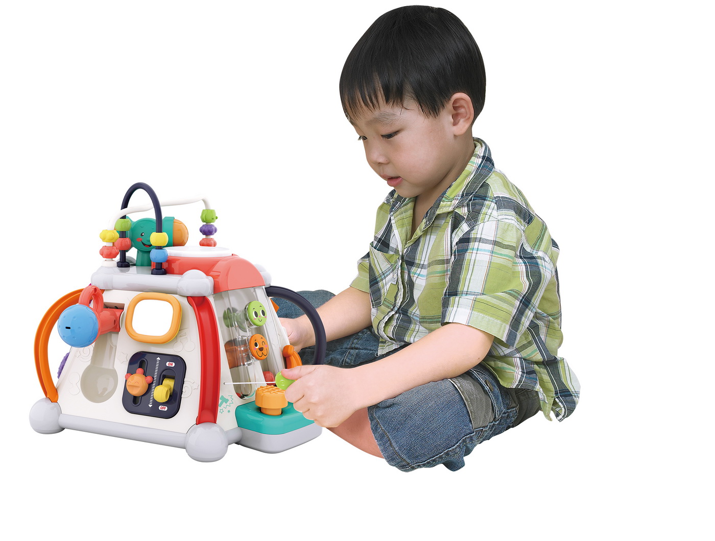 Copilul dumneavoastra poate sa se joace si sa invete alaturide piramida cu activitati de la HolaToys. Acesta va oferi copilului dumneavoastra momente pline de distractie si veselie, iar dumneavoastra, privindu-l, zambete nemasurabile. Fiecare din fetele jucariei contin activitati diferite. Sunetele si luminile emise sunt menite sa dezvolte perceptia vizuala si auditiva si coordonarea dintre maini si ochi a copilului dumneavoastra. Formele speciale si culorile vii incurajeaza copilul sa exerseze si sa se joace stimuland astfel dezvoltarea individuala. Functioneaza cu 3 baterii AA de 1.5v ce nu sunt incluse. Dimensiuni produs: 31cm L x 29.5cm l x 22cm h. Recomandat de la varsta de: 18 luni+. Pretul acestui produs include taxa de timbru verde.
