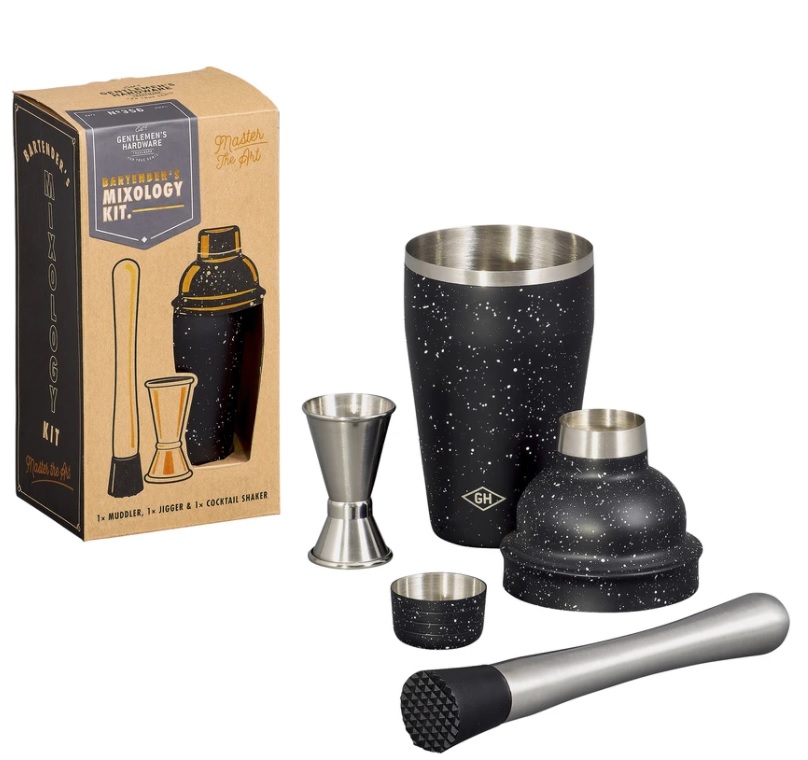 Set de accesorii pentru prepararea cocktailurilor contine: un pahar pentru amestecat (shaker) din otel inoxidabil cu capacitatea de 500ml, o masura pentru bauturi (15-30ml) si un pistil (muddler) pentru zdrobirea diverselor ingrediente necesare.