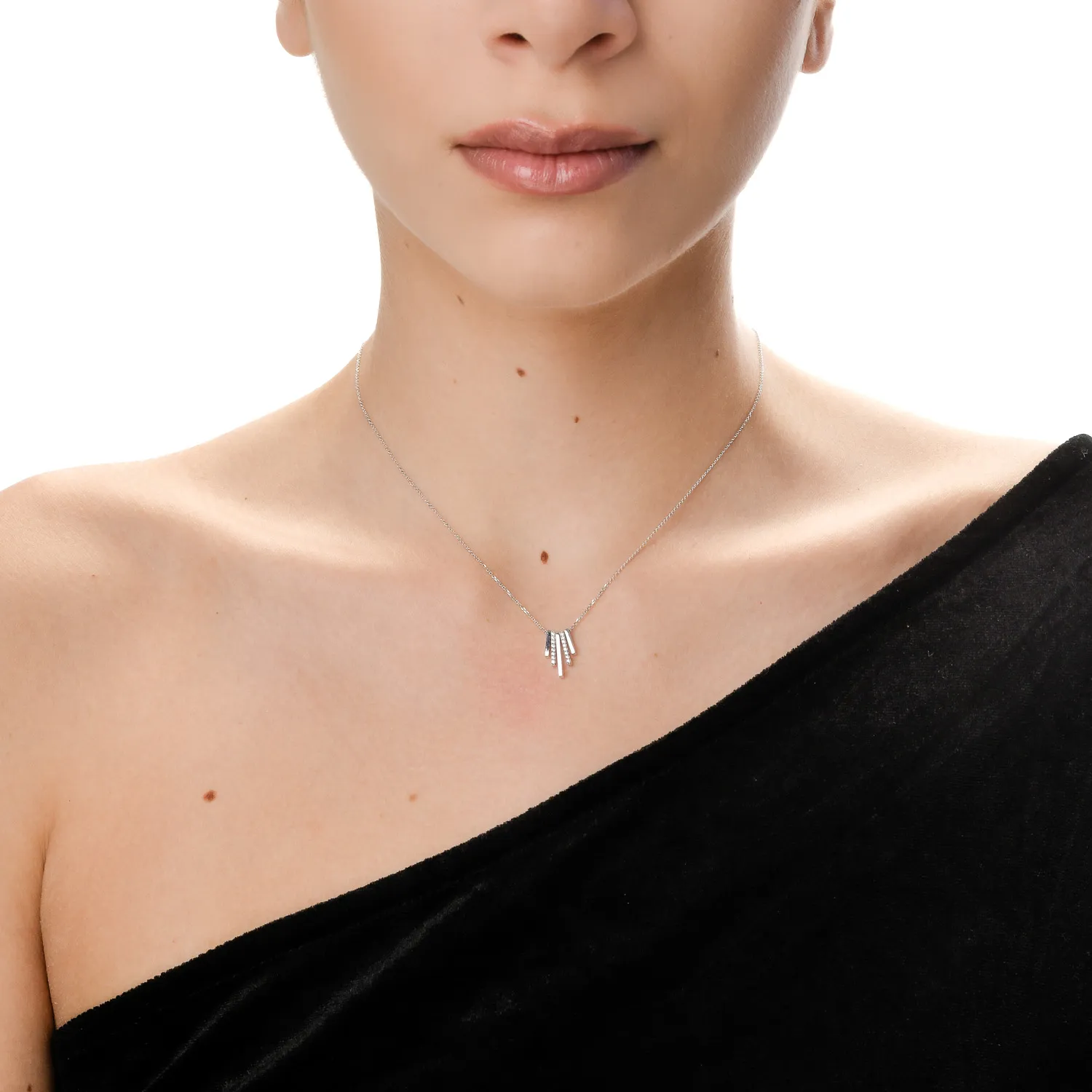 Linii si proportii bine definite contureaza acest pandantiv geometric din aur alb, gandit intr-o estetica actuala. Elementele verticale creeaza un joc vizual echilibrat, adaugand dinamica si luminozitate piesei. Designul pastreaza o nota moderna, usor de integrat in tinute simple, dar suficient de expresiv pentru a atrage atentia. Este un lant potrivit pentru purtare zilnica, cu un aer fresh si bine structurat. Un accent contemporan pentru stilul personal. Descopera DAAR!