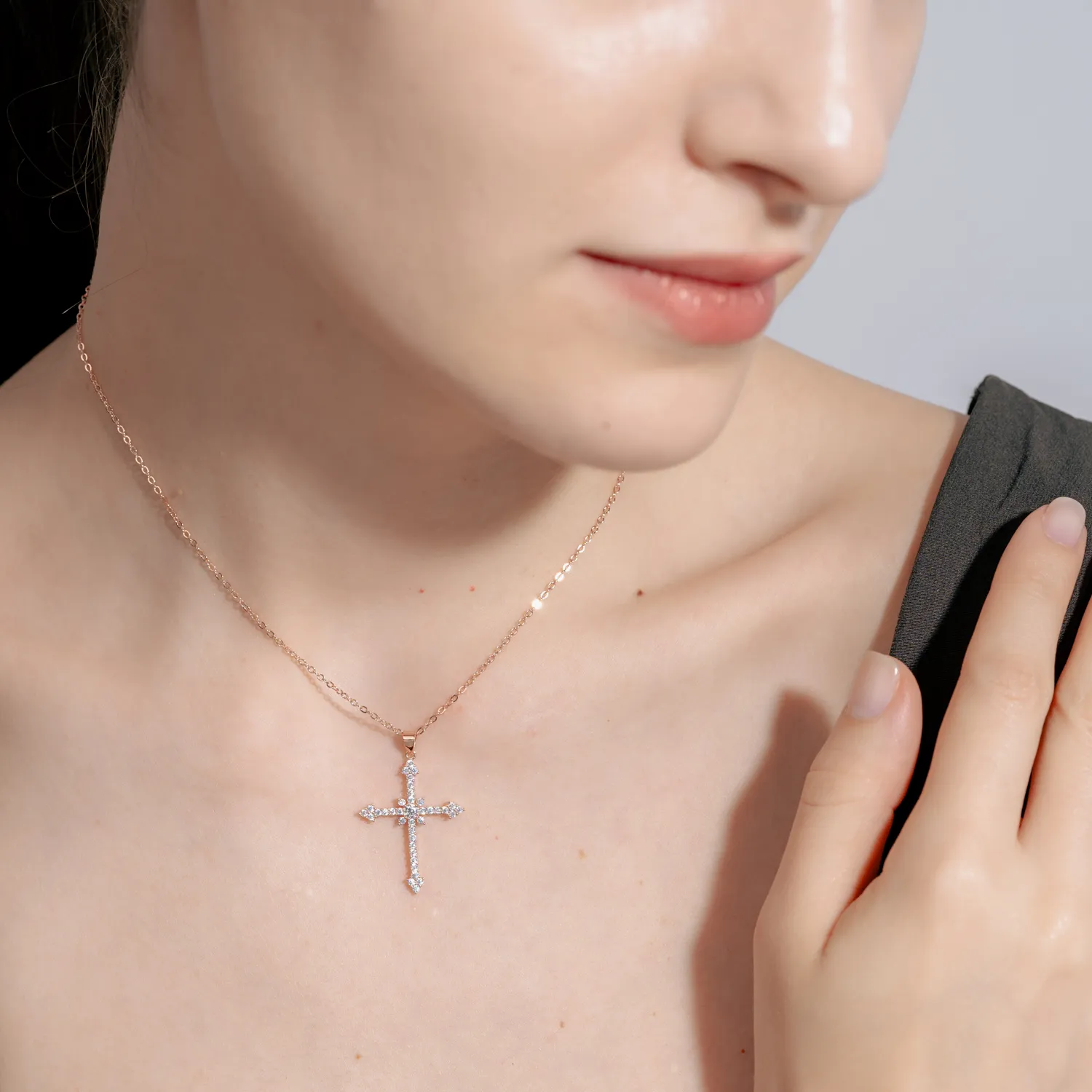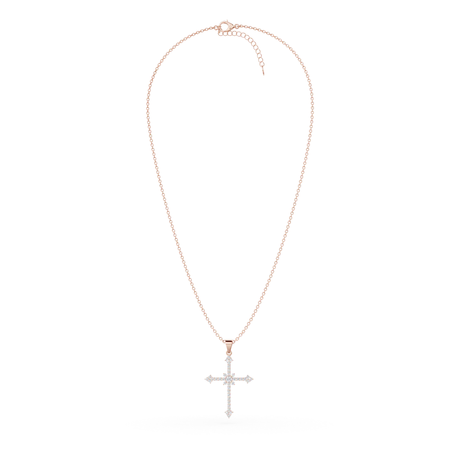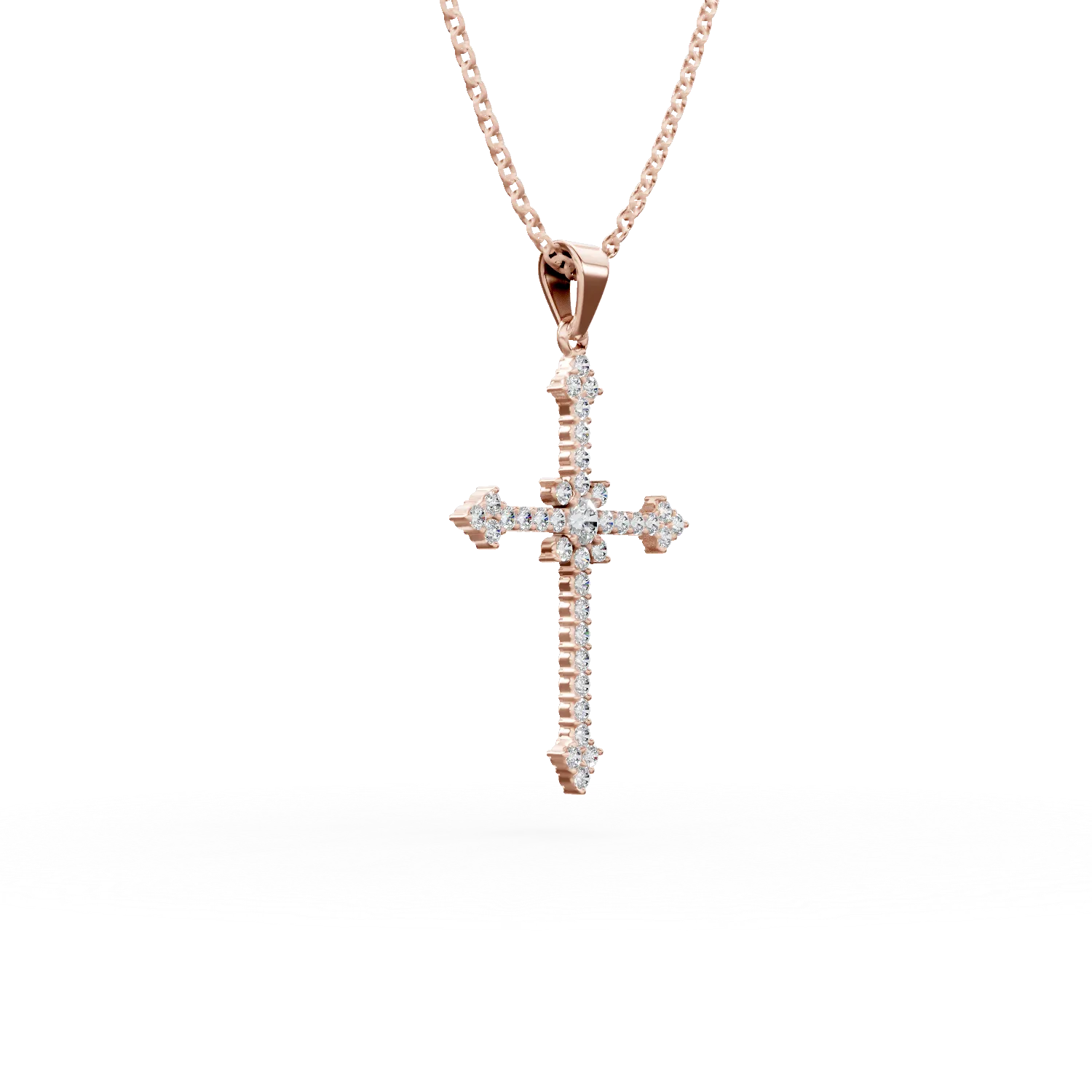 Combinatia intre clasic si modern este noul trend de care ai nevoie. Acest lant din argint roz cu pandantiv cruce cu zirconii albe este un clasic al categoriei sale fiind armonios in orice combinatie. Fii autentica si remarcabila cu bijuteriile DAAR.
