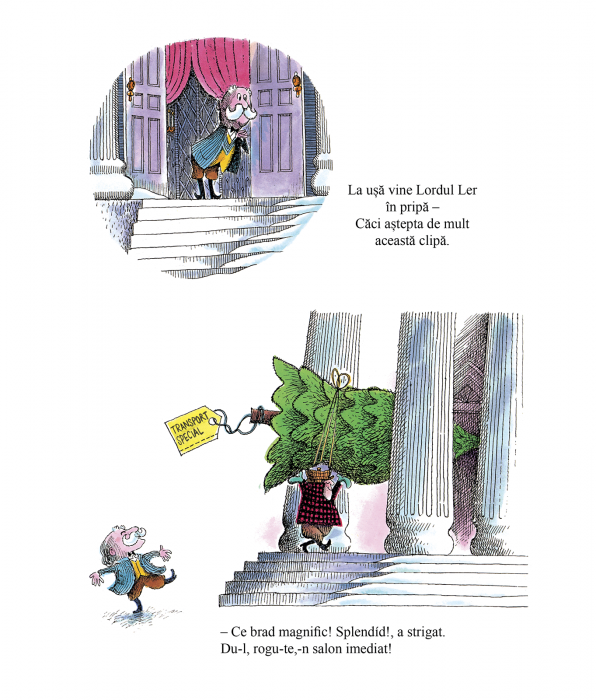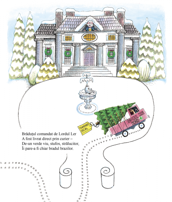 E ziua de ajun, iar Lordului Ler tocmai i s-a livrat bradutul de Craciun. Doar ca bradutul e ditamai bradul, e „bradul brazilor”, si este prea inalt ca sa incapa in salon. Asa ca Lordul Ler ii taie bradului putin din varf, cat sa se potriveasca in casa. Varful taiat trece prin ajustari succesive, intr-o istorie care se repeta, si ajunge sa faca incojurul padruii, din vizuina in vizuina, spre bucuria animalelor care il gasesc.O poveste clasica, plina de haz, care contribuie de generatii la bucuria Craciunului.